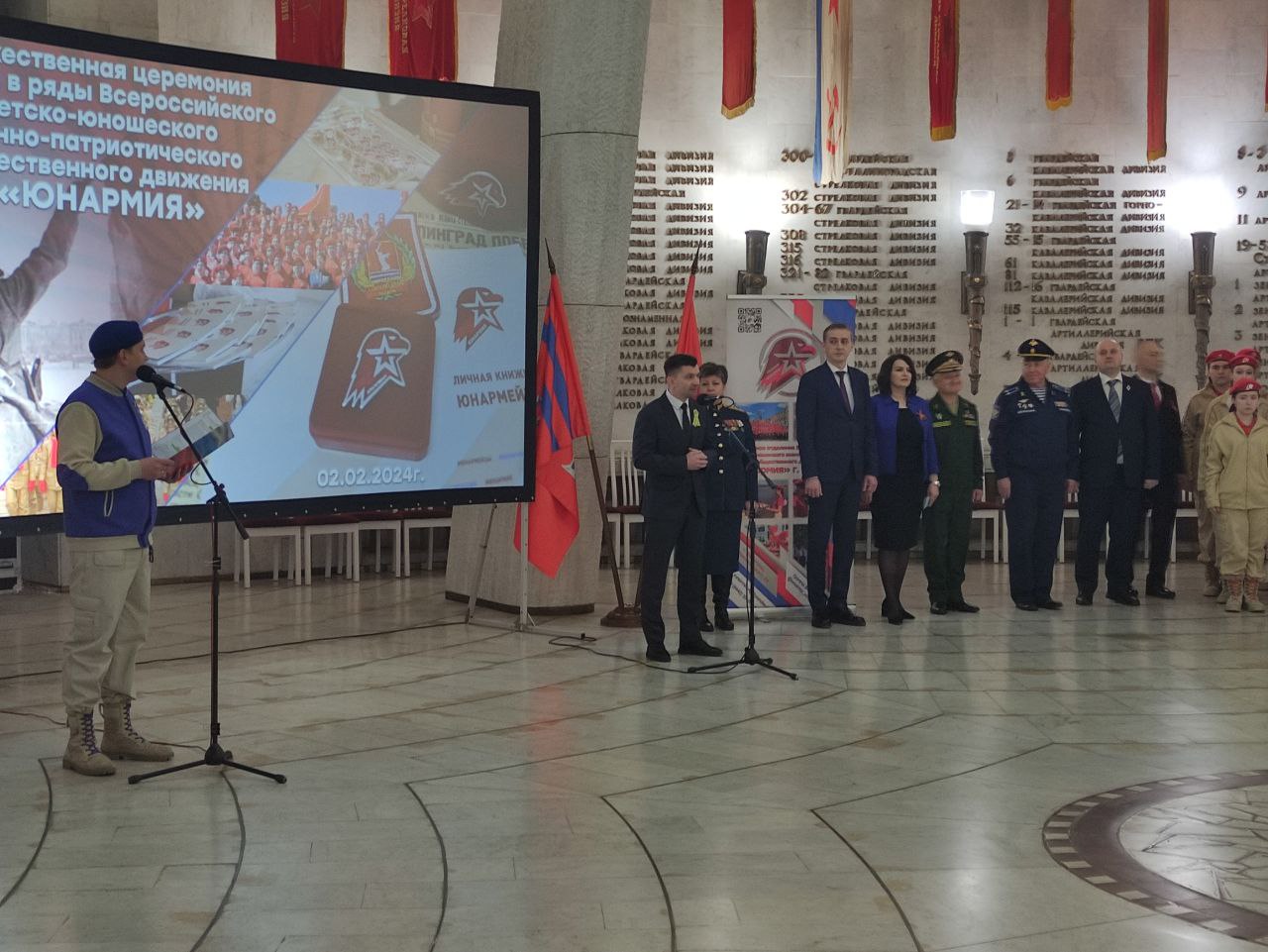 Сегодня в Триумфальном зале музея-панорамы «Сталинградская битва» состоялся торжественный прием в ряды юнармейцев. Ребят поздравили с этим событием представители регионального Штаба ЮНАРМИИ, заместитель главы Волгограда Анна Кувычко, заместитель председателя Волгоградской городской Думы Геннадий Кузнецов.