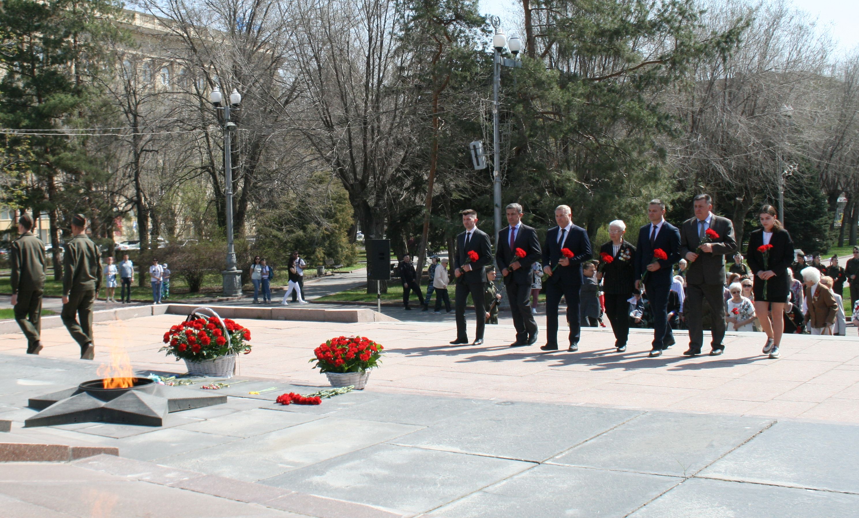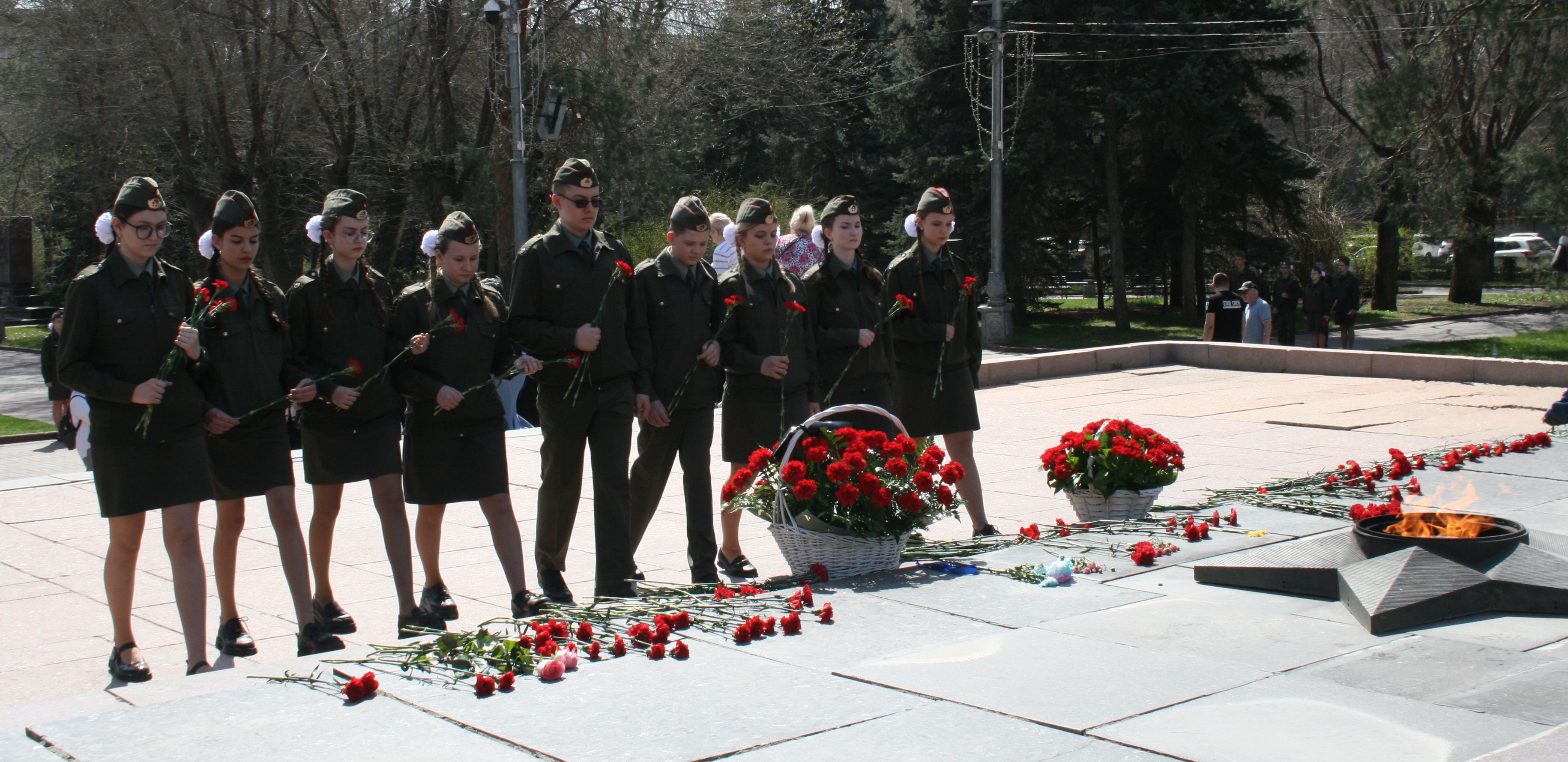 Участники акции почтили память жертв фашизма минутой молчания и возложили к Вечному огню живые цветы.