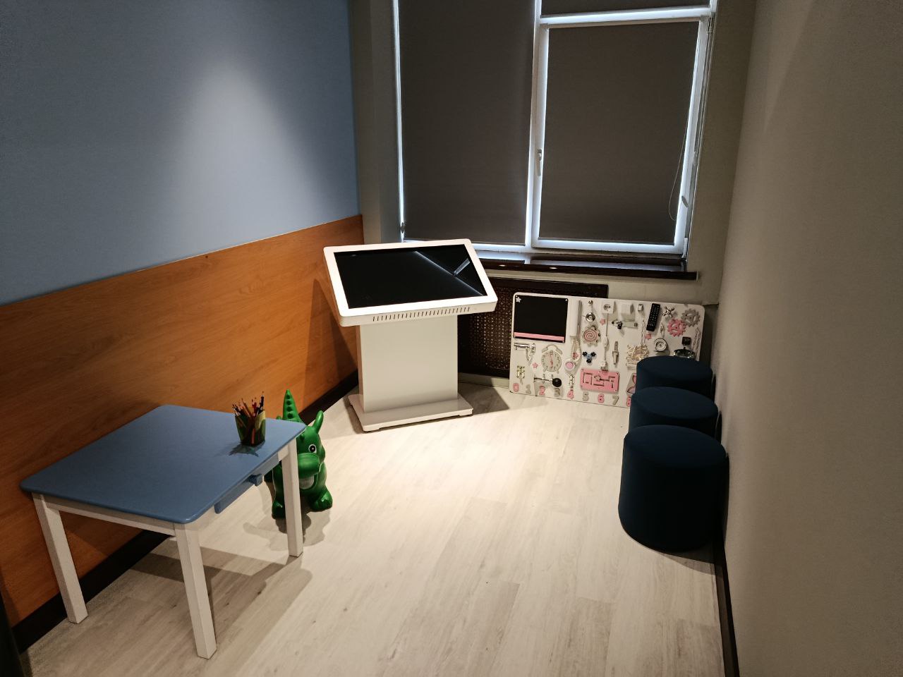 В уютном помещении оборудована детская зона с игровым аппаратом, действует справочный тактильно-сенсорный видеотерминал, с помощью которого можно узнать о предоставляемых услугах, а также получить консультацию оператора, в том числе на русском жестовом языке. Рядом с залом расположена адаптированная санитарная комната.