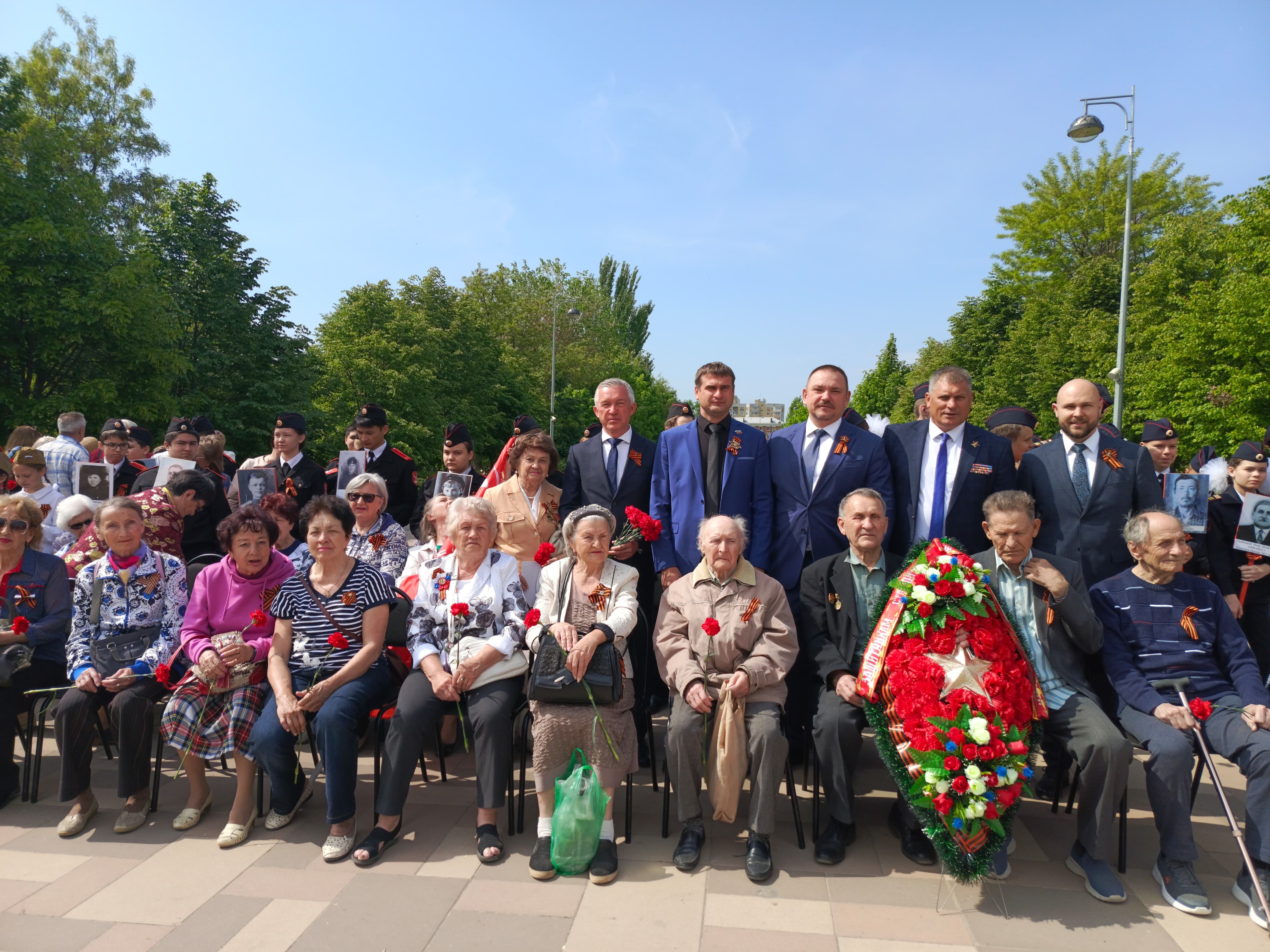 Многие жители района пришли на мероприятие с портретами своих родственников - фронтовиков.