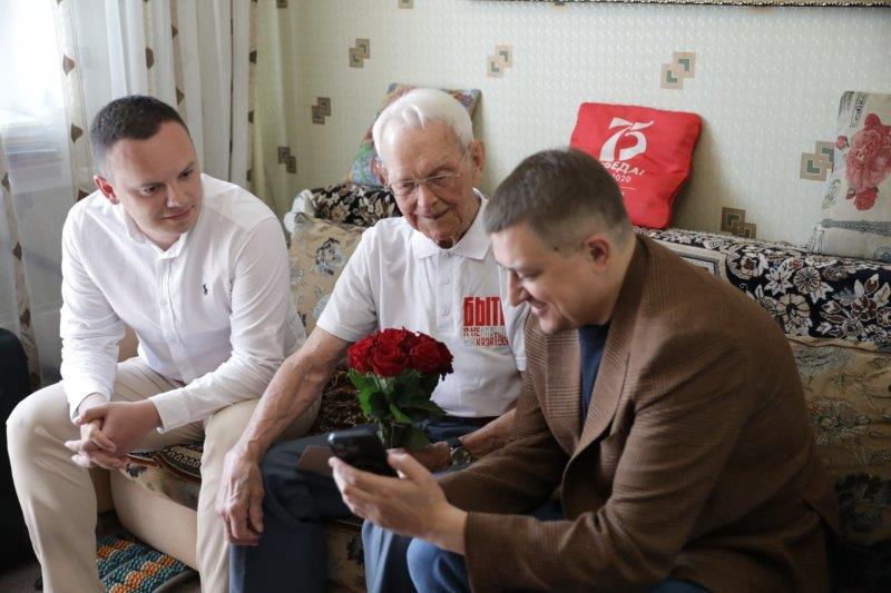 99 лет сегодня исполняется участнику Великой Отечественной войны, ветерану Вооруженных Сил Александру Васильевичу Медкову – человеку удивительному и поистине неординарному. Его жизненный девиз: «Всегда в движении!» И сегодня, как и всегда, он покоряет окружающих своим оптимизмом, молодым задором и жизнелюбием. На торжество к ветерану соберутся близкие и множество гостей, одними из первых его поздравили давние друзья – депутаты по округу Андрей Гимбатов и Михаил Харитонин.