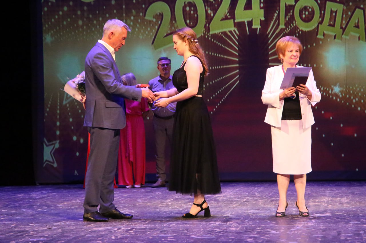 Владлен Колесников поздравил выпускников с окончанием учёбы, и вместе с Наталией Барышниковой и Данутой Маликовой вручил ребятам аттестаты и медали.
