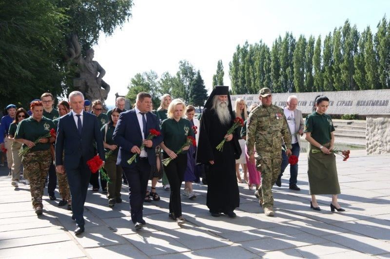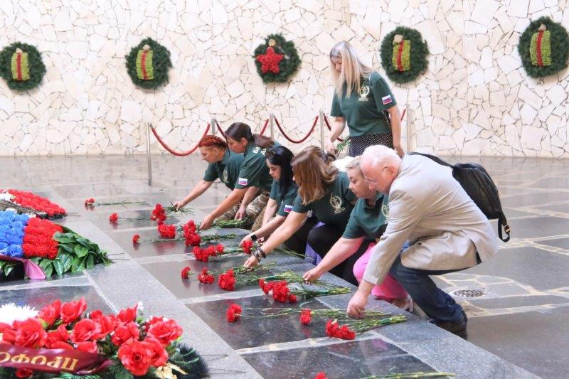 Своим символом Комитет выбрал наш знаменитый на весь мир величественный монумент «Родина-мать зовет». И сегодня утром Мамаев курган стал первым местом, которое посетили в Волгограде гости из Москвы и южных регионов России. Женщины, в том числе представительницы Луганской и Донецкой Народных Республик, Херсонской и Запорожской областей, вместе с волгоградскими активистами КСВО и юнармейцами возложили цветы к Вечном огню в Зале Воинской Славы и провели акцию в память о детях, погибших в ходе боевых действий.