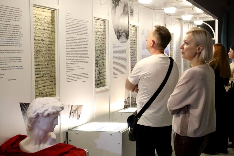 Главными экспонатами уникальной экспозиции стали оригинальные письма художника Петра Кончаловского художнику Илье Машкову. К рукописным листам прилагаются их увеличенные изображения – чтобы посетители могли прочитать, о чем писал Кончаловский своему другу и соратнику по творческому объединению «Бубновый валет».