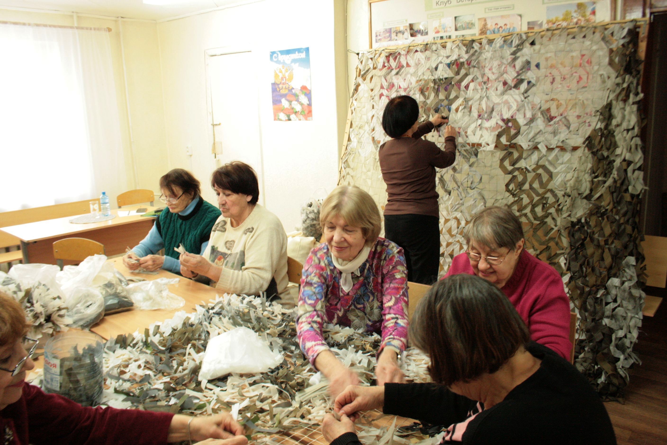 В Совете ветеранов Кировского района действует постоянная волонтерская группа - работа по изготовлению снаряжения для наших бойцов не прекращается ни на день. За это время серебряные волонтеры сплели и отправили на передовую уже почти сотню больших маскировочных сетей, более полутора тысяч нашлемников, изготовили десятки маскировочных костюмов.