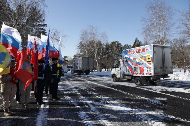 Масштабный автопоезд с грузом для участников СВО – предметами первой необходимости, дронами, генераторами, теплой одеждой, экипировкой, маскировочными сетями и многим другим сопроводили сегодня в путь теплыми словами и напутствиями – от ветеранов, общественности, волонтеров, молодежи и руководителей представительной и исполнительной власти городов-участников акции.