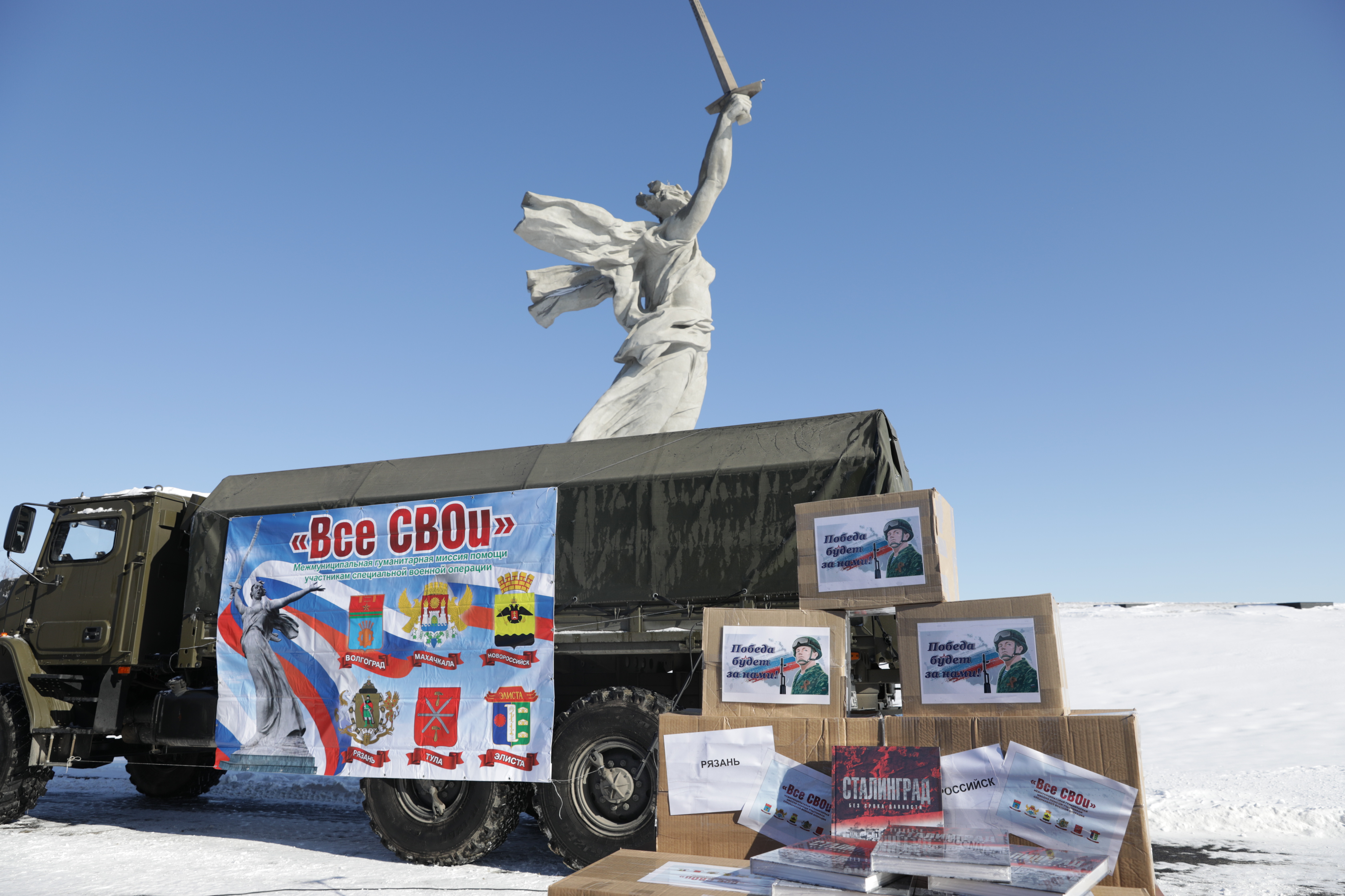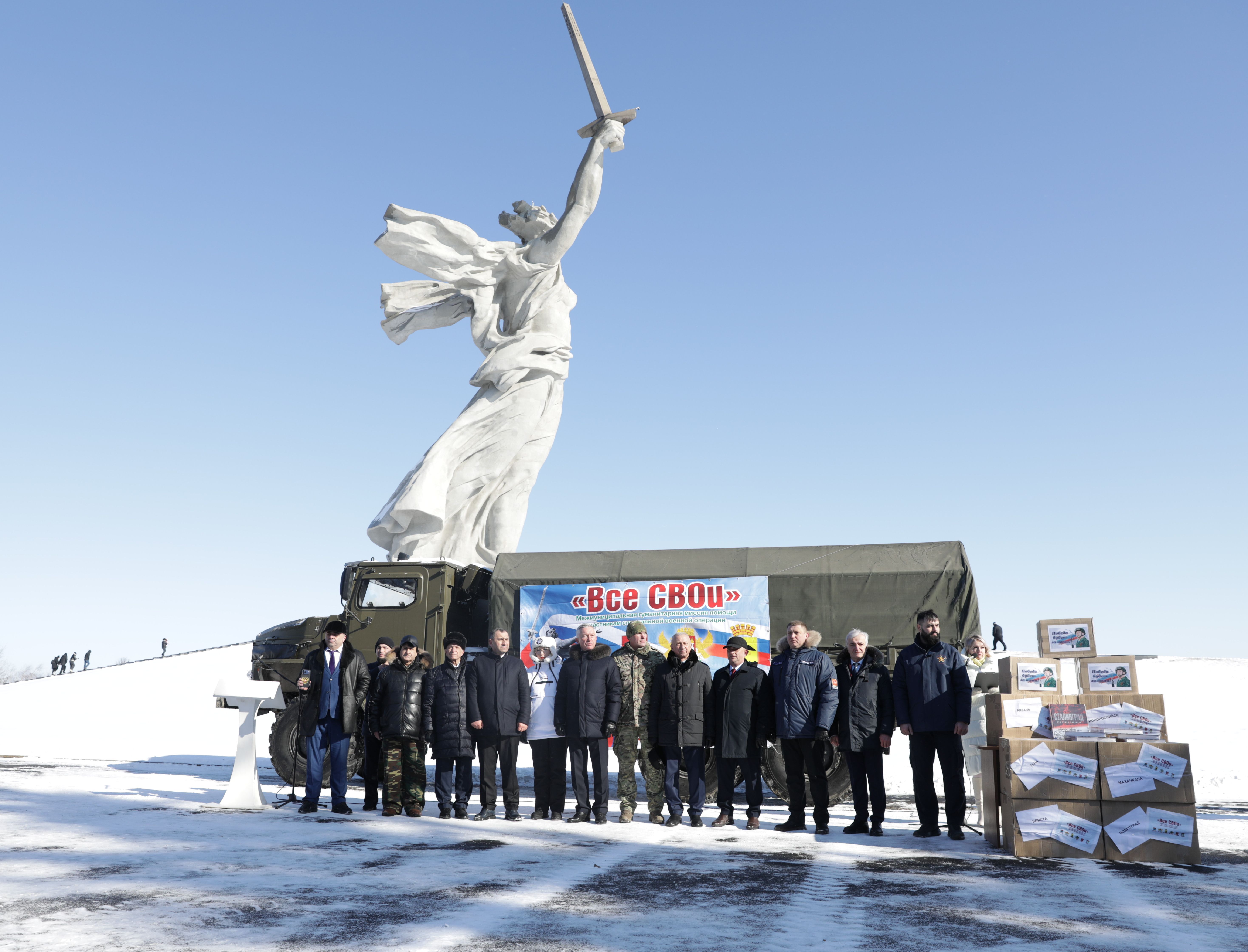 В преддверии Дня защитника Отечества в Волгограде прошла акция поддержки наших военнослужащих «Все СВОи». Для ее реализации объединились руководители представительных и исполнительных органов власти шести городов, в том числе трех городов-героев: Волгограда, Тулы, Новороссийска, а также Рязани, Махачкалы и Элисты. Гуманитарный груз, сформированный жителями этих городов, сегодня отправился в зону специальной военной операции. Старт автопоезду был дан на Мамаевом кургане.