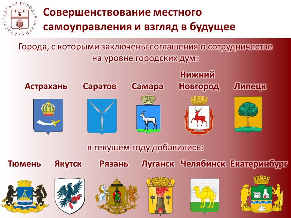7. Волгоградская городская Дума активно участвует в реализации крупных федеральных проектов в регионе. Успешная работа в рамках программы «СВОй бизнес» уже упоминалась. Отметим также проведение регионального этапа Национальной премии «Человек труда».