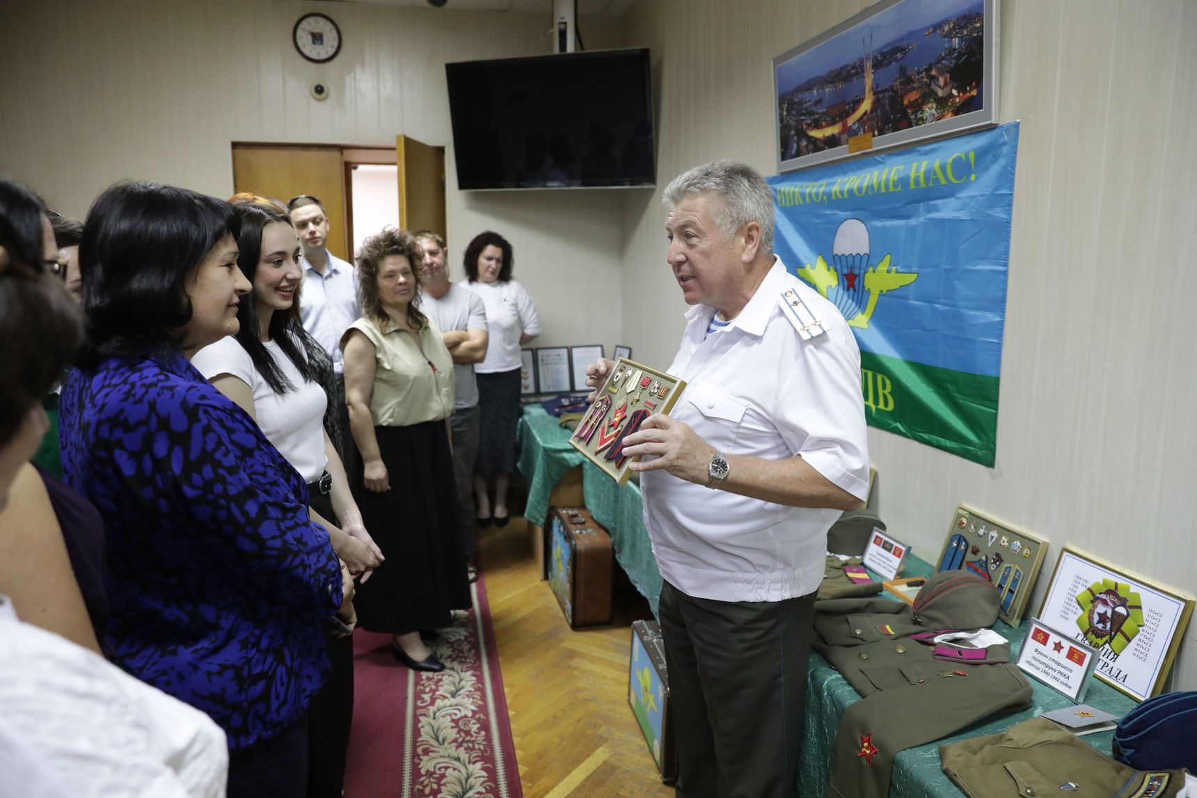 В рамках торжественного приема региональным «Союзом десантников» была организована передвижная выставка, где все участники могли познакомиться с формой и амуницией Воздушно-десантных войск разных лет. Экскурсию по экспозиции для желающих провел подполковник ВДВ в отставке Владимир Воронков.