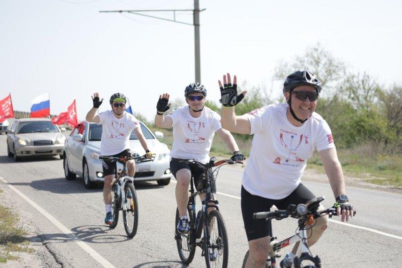 80-километровый велопробег совершили сегодня совместно муниципальные и региональные депутаты, общественники и представители силовых структур. Акция была посвящена 80-летию Великой Победы. Участники проехали маршрут от памятника строителям Волго-Донского судоходного канала в поселке Соляной Красноармейского района Волгограда до монумента «Соединение фронтов» в поселке Пятиморск Калачевского района Волгоградской области.