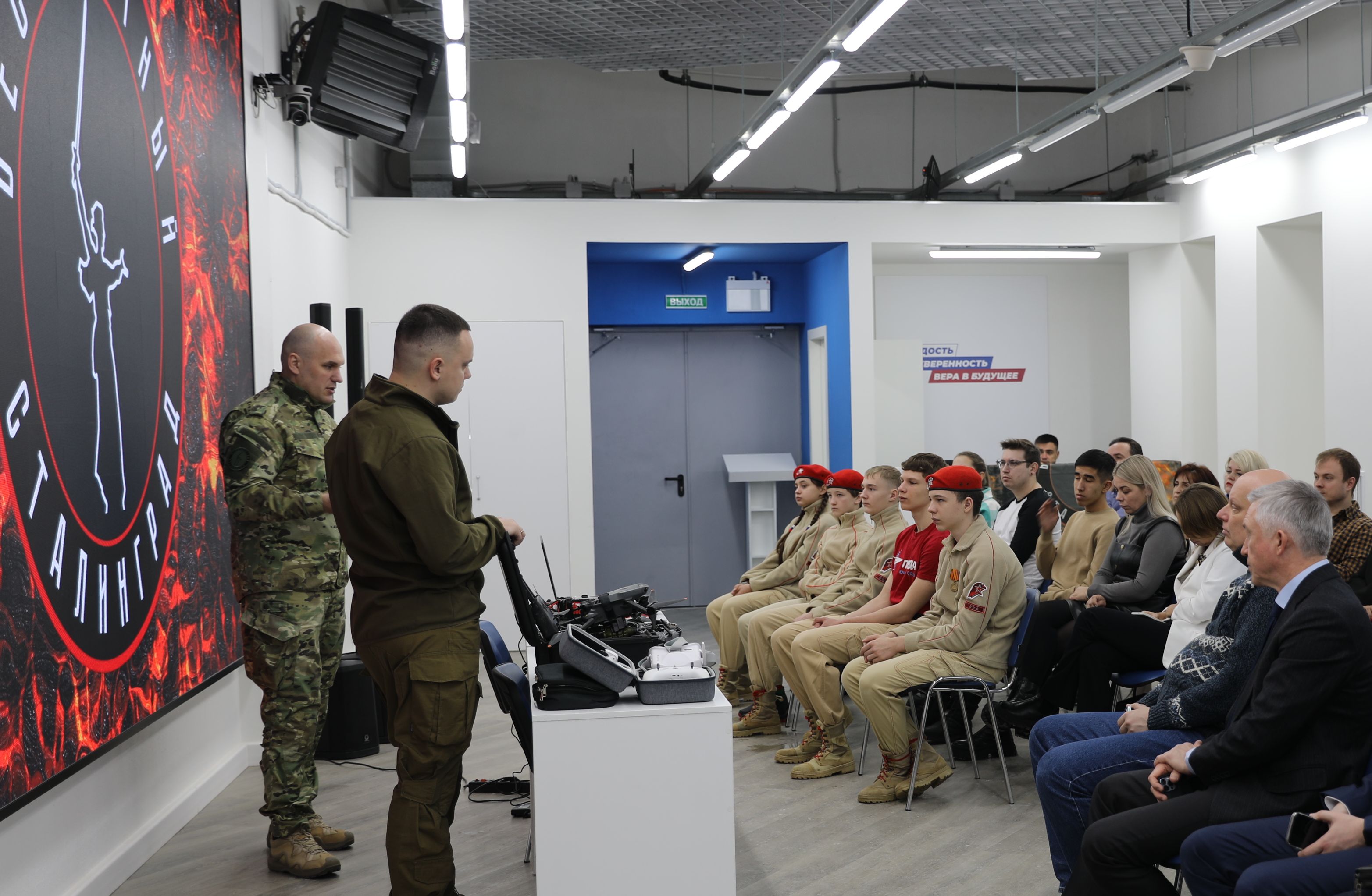 Участники мероприятия посмотрели ролики о работе беспилотников в зоне специальной военной операции. Также инструкторы запустили одну из моделей БПЛА в Штабе общественной поддержки, чтобы показать принцип его управления. Юнармейцы попробовали управлять беспилотником с помощью интерактивной программы и джойстика.