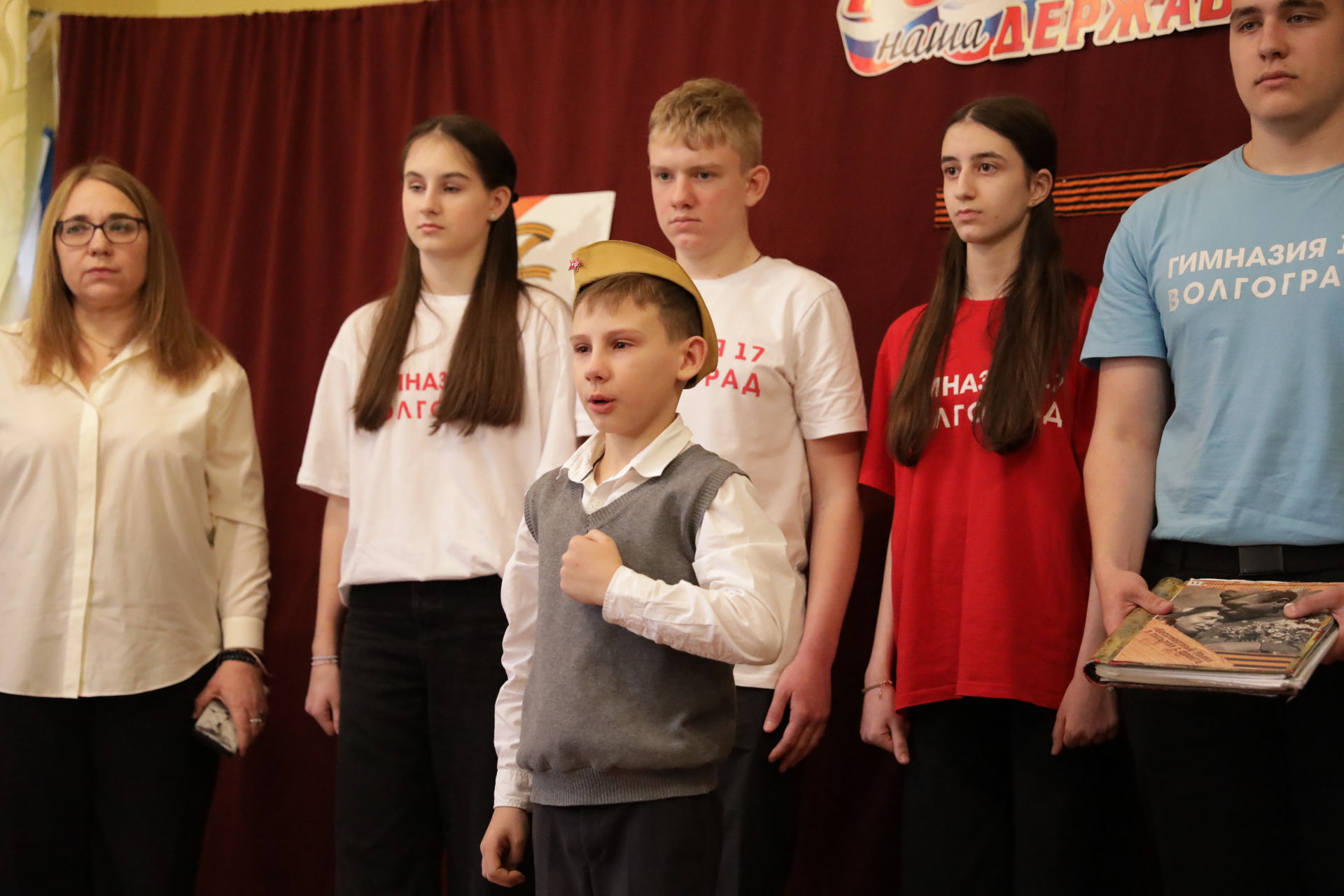 Сегодняшняя концертная программа в «Роднике» была подготовлена также при совместном участии добрых друзей - свои произведения исполняла волгоградский автор и композитор Диля Белькина, песни и стихи звучали от серебряных волонтеров, о патриотической работе в образовательном учреждении рассказывали учащиеся гимназии. В числе маленьких артистов, растрогавших гостей до слез, был и сын участника СВО.