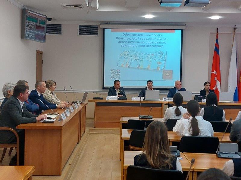 В Волгограде продолжается реализация образовательного проекта по профориентации школьников. В сегодняшнем разговоре участвовали школьники из гимназий Ворошиловского района, заместители председателя городской Думы Дмитрий Дильман и Геннадий Кузнецов, заместитель председателя комитета по социальной политике Наталия Кушнирук, заместитель председателя комитета по экономике, промышленности и предпринимательству Андрей Удахин.