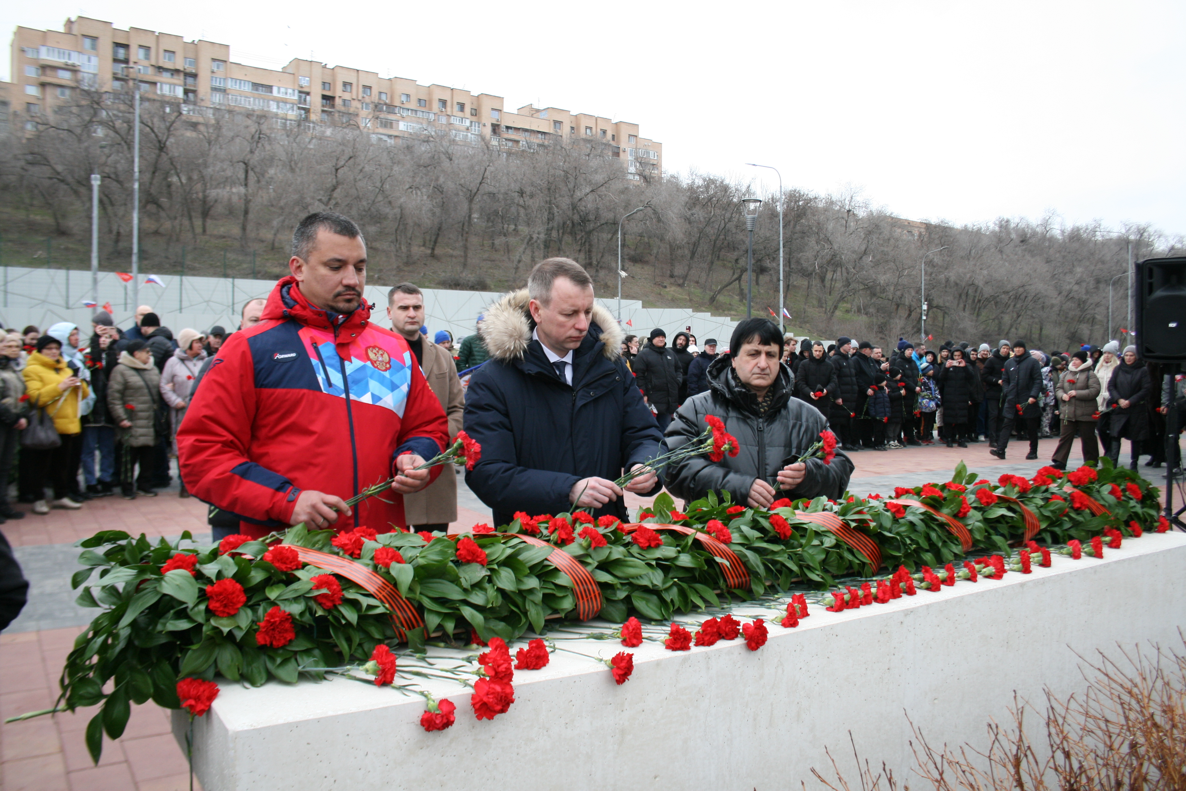 Сегодня перед началом соревнований участники легкоатлетического забега также почтили память защитников Сталинграда. Собравшиеся – воспитанники спортивных школ Волгограда, студенты, ветераны спорта, любители бега - возложили цветы к памятному знаку Героям Волжской Военной Флотилии на Центральной набережной.
