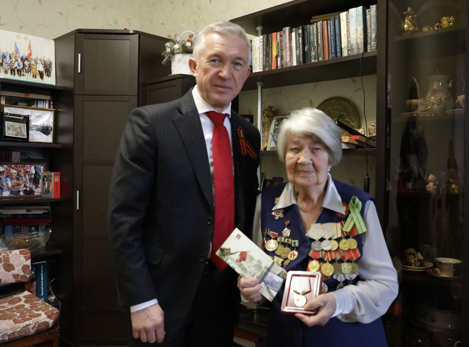 Председатель Волгоградской городской Думы вручил юбилейные медали «80 лет Победы в Великой Отечественной войне 1941 – 1945 годов» участникам Сталинградской битвы Александре Семеновне Машковой и Валентине Федоровне Подлесной.
