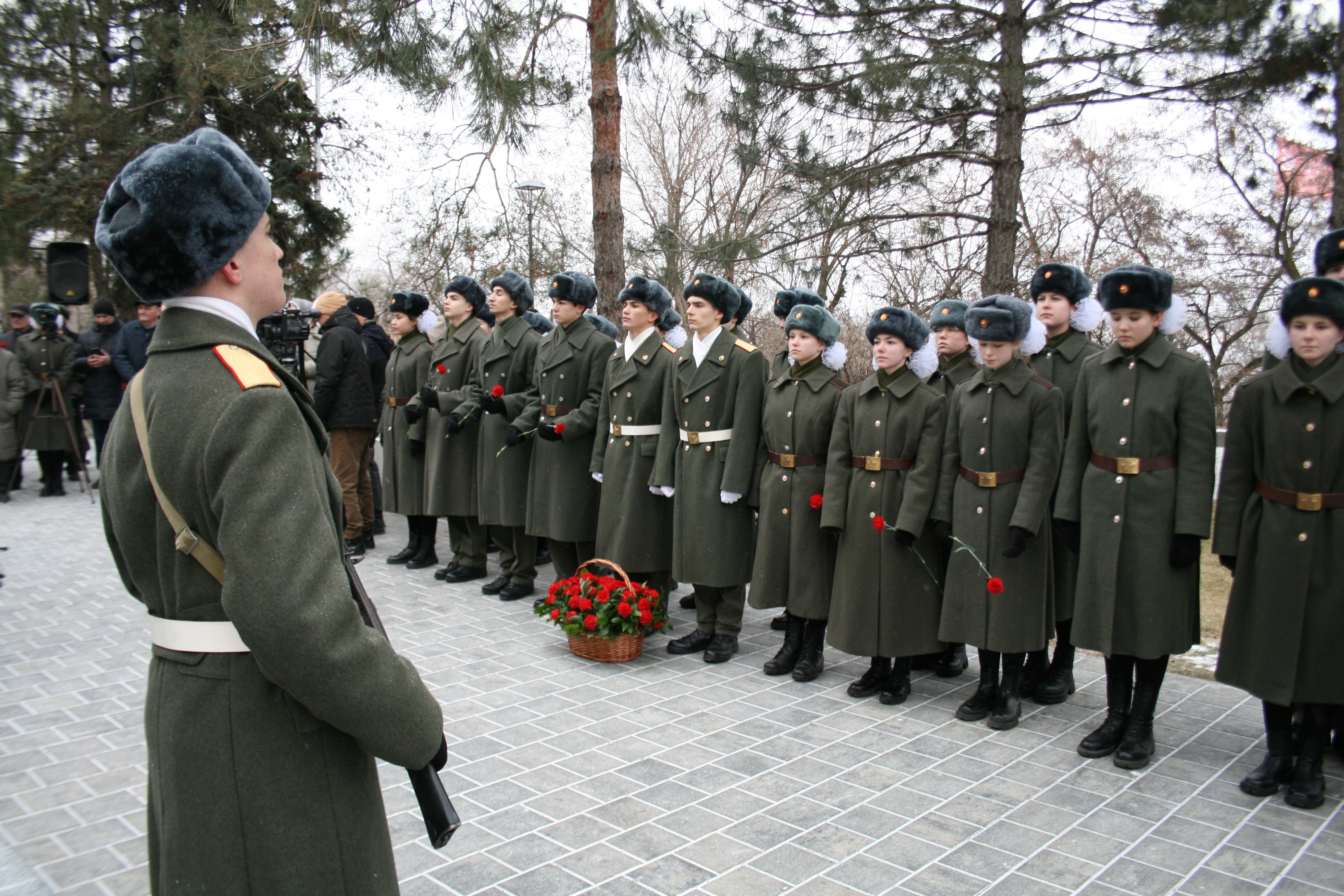 Собравшиеся почтили минутой молчания память Василия Ивановича Чуйкова и возложили цветы к памятнику командующему 62-й Армией, Почетному гражданину города-героя Волгограда.