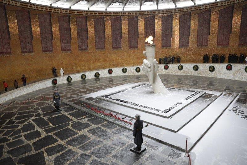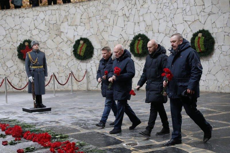 Сегодня на главной высоте России состоялось торжественное возложение цветов к Вечному огню в Зале Воинской Славы, к могиле Маршала Советского Союза, дважды Героя Советского Союза Василия Чуйкова и к Малой братской могиле.