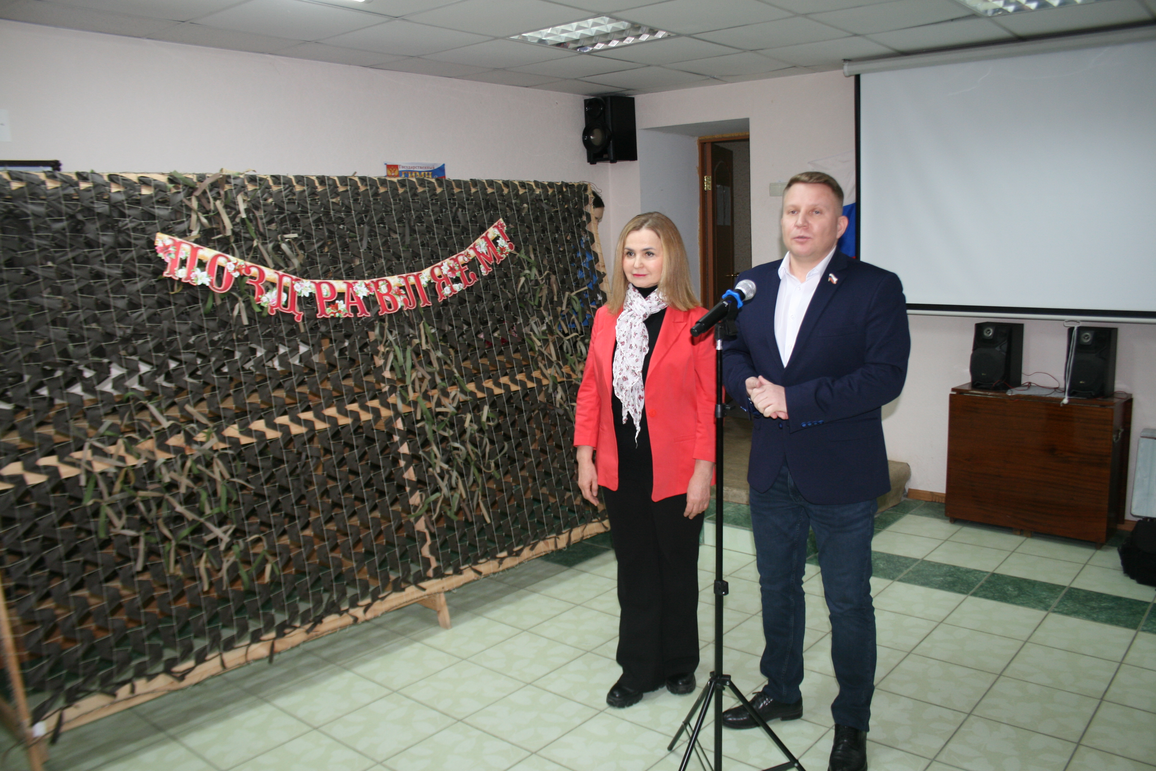Ирина Фомина и Дмитрий Федюшкин поздравили женщин клуба «Виктория» с наступающим праздником и вручили цветы и подарки – бытовую технику для дальнейшей работы мастериц.