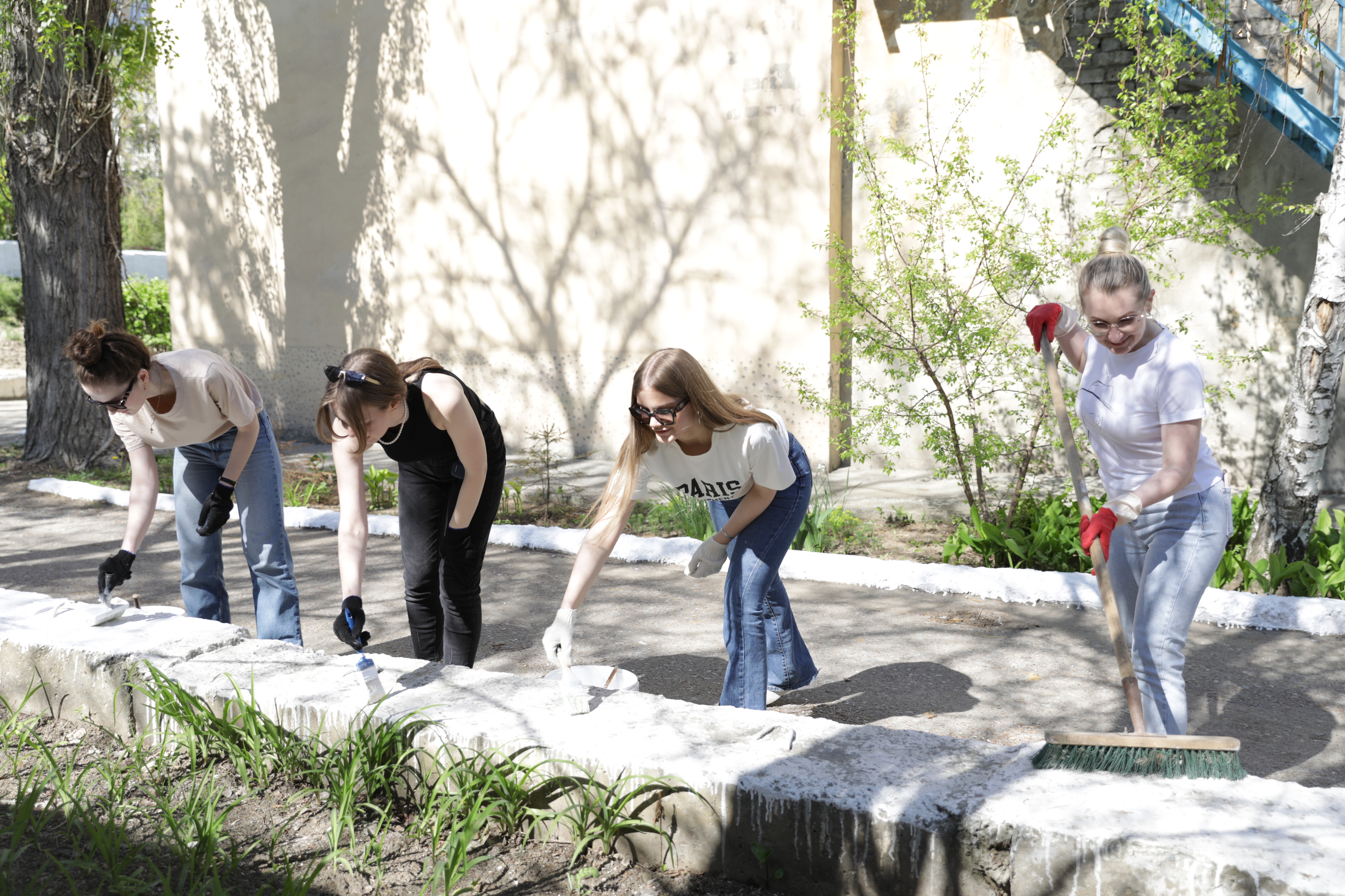 В течение нескольких часов совместными усилиями территория была облагорожена – убрана прошлогодняя листва и обрезаны сухие ветки на кустарниках, покрашены бордюры, ограждения и лестницы, почишены асфальтированные дорожки. Собрано и вывезено около 60 мешков мусора.