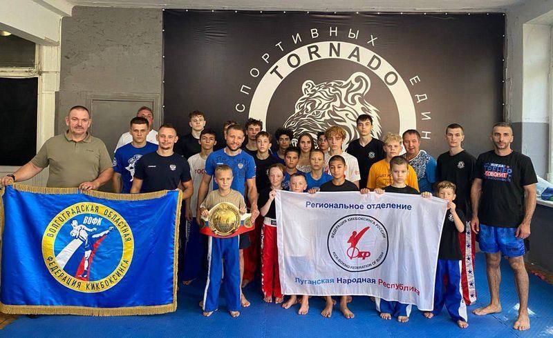 Волгоградские кикбоксеры не только посетили наших защитников, но и встретились со спортсменами Луганской федерации кикбоксинга.