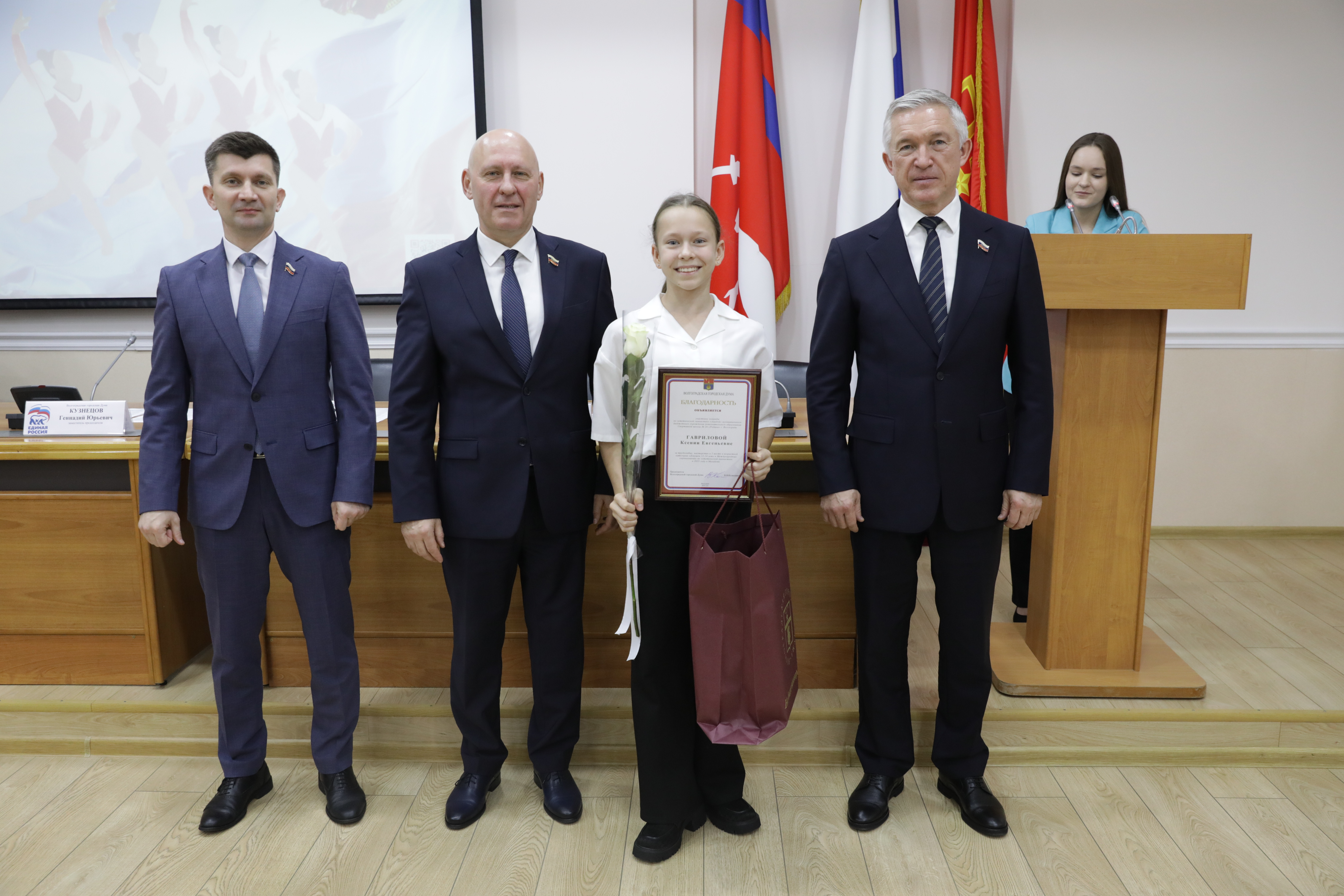 Волгоградские гимнасты разных возрастных категорий в составе сборной России завоевали «золото», «серебро» и «бронзу» на Международном турнире по эстетической гимнастике, прошедшем в Куала-Лумпуре. В Волгоградской городской Думе состоялось чествование спортсменов. Председатель гордумы Владлен Колесников, вице-спикеры Дмитрий Дильман и Геннадий Кузнецов, зампред комитета по образованию, молодежной политике и спорту Сергей Берендеев поздравили команды и наставников с успешным выступлением на престижных соревнованиях и вручили памятные подарки и Благодарности Волгоградской городской Думы.