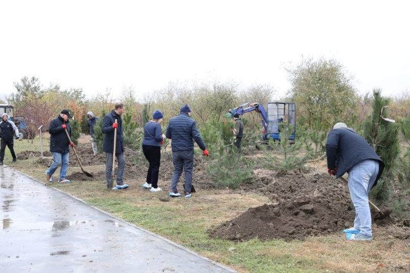 10-летние саженцы высадили сегодня сотрудники производственного объединения «Аквамаш» в честь 75-летнего юбилея знаменитого российского авиастроителя Бориса Брегмана.