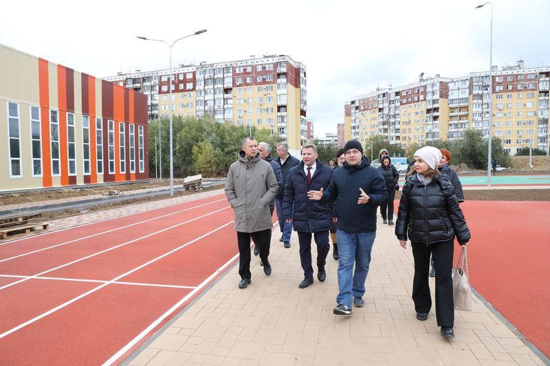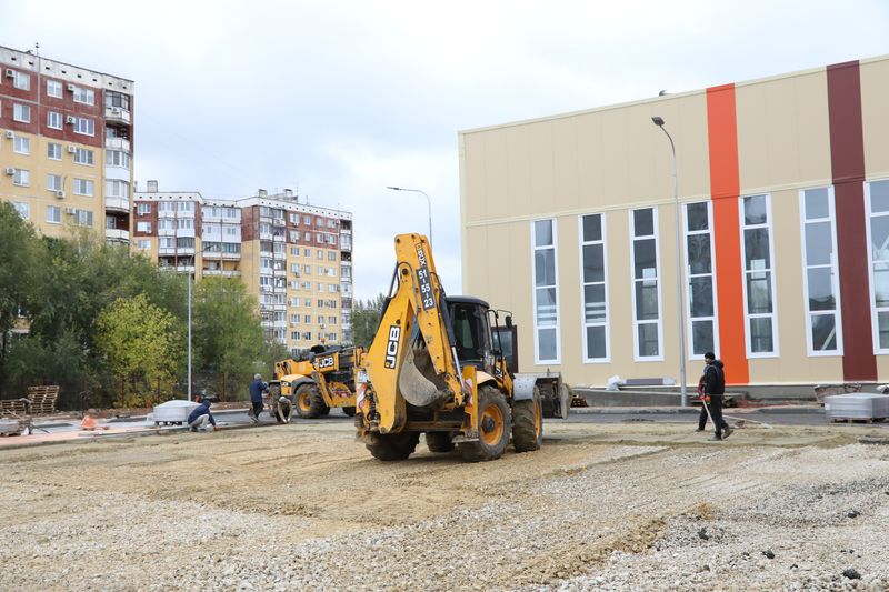 Кипит работа строителей и на будущей спортплощадке. На беговых дорожках стадиона строители уложили эластур. В активной стадии — обустройство других элементов спортивной зоны на открытом воздухе, а также большого спортзала.
