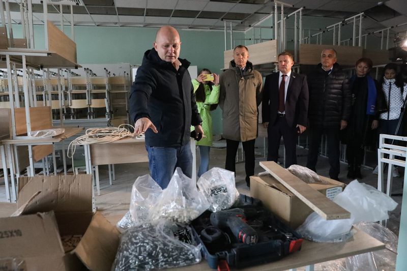 В настоящее время строительная готовность объекта - 80%, подрядчик сейчас завершает внутреннюю отделку помещений. Установлено свыше трехсот двухкамерных стеклопакетов, которые обеспечат комфортные условия для занятий. Началось подключение здания школы к системе отопления. Завозится школьная мебель, на следующей неделе ожидается поставка цифрового оборудования.