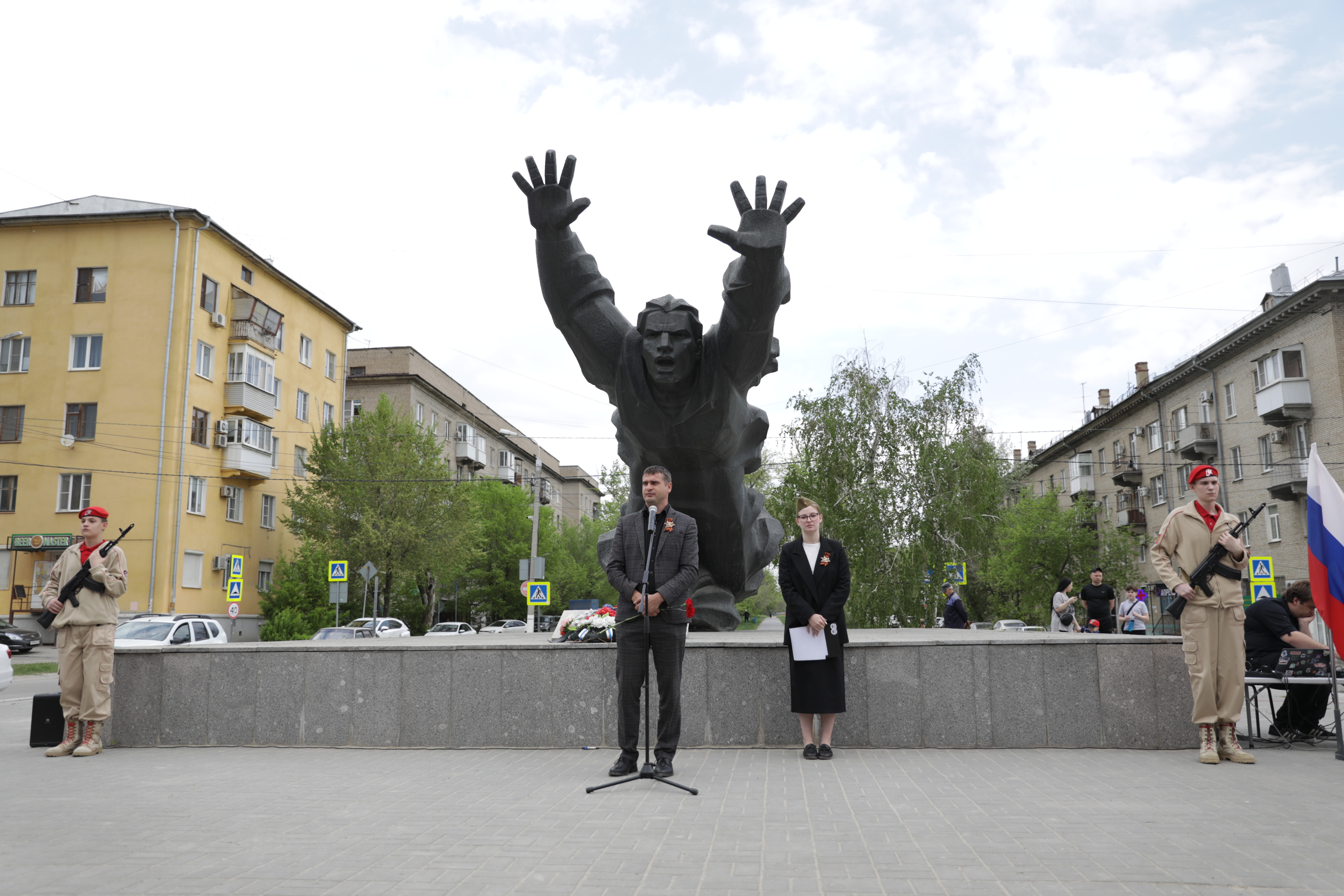 Сегодня у памятника Герою Советского Союза Михаилу Паникахе в Краснооктябрьском районе состоялось открытие ежегодной военно-патриотической акции «Вахта Памяти. 15 дней до Победы». В торжественном мероприятии приняли участие ветераны, общественность, учащиеся и педагоги школ района, депутат Волгоградской городской Думы Владислав Минаев.