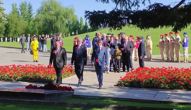 Венки и живые цветы возложили сегодня утром волгоградцы к Вечному огню в Пантеоне Славы, к могиле Маршала Василия Чуйкова, к братской могиле советских воинов – празднование Дня Победы в городе-герое Волгограде традиционно началось с торжественной церемонии на Мамаевом кургане.