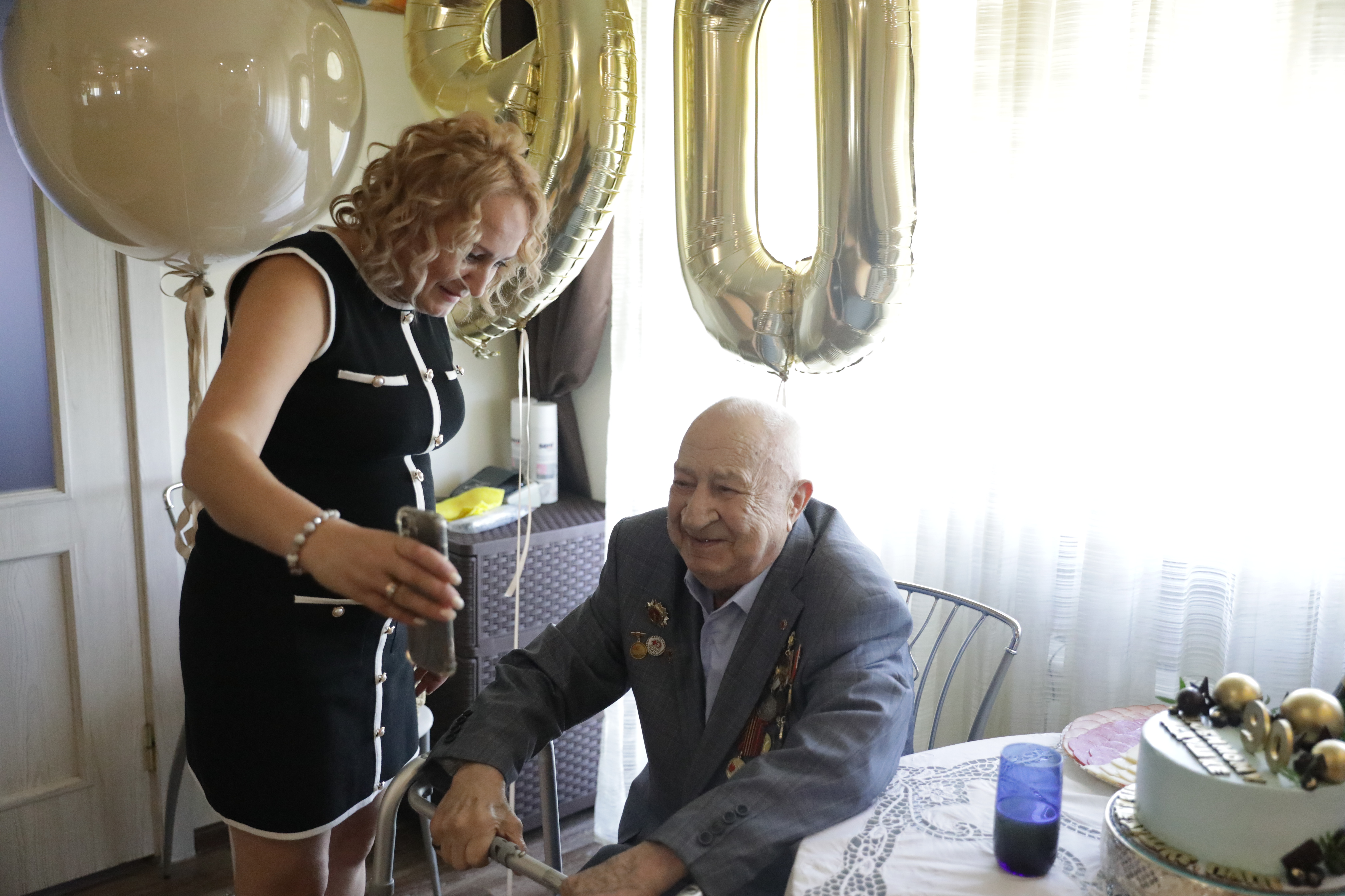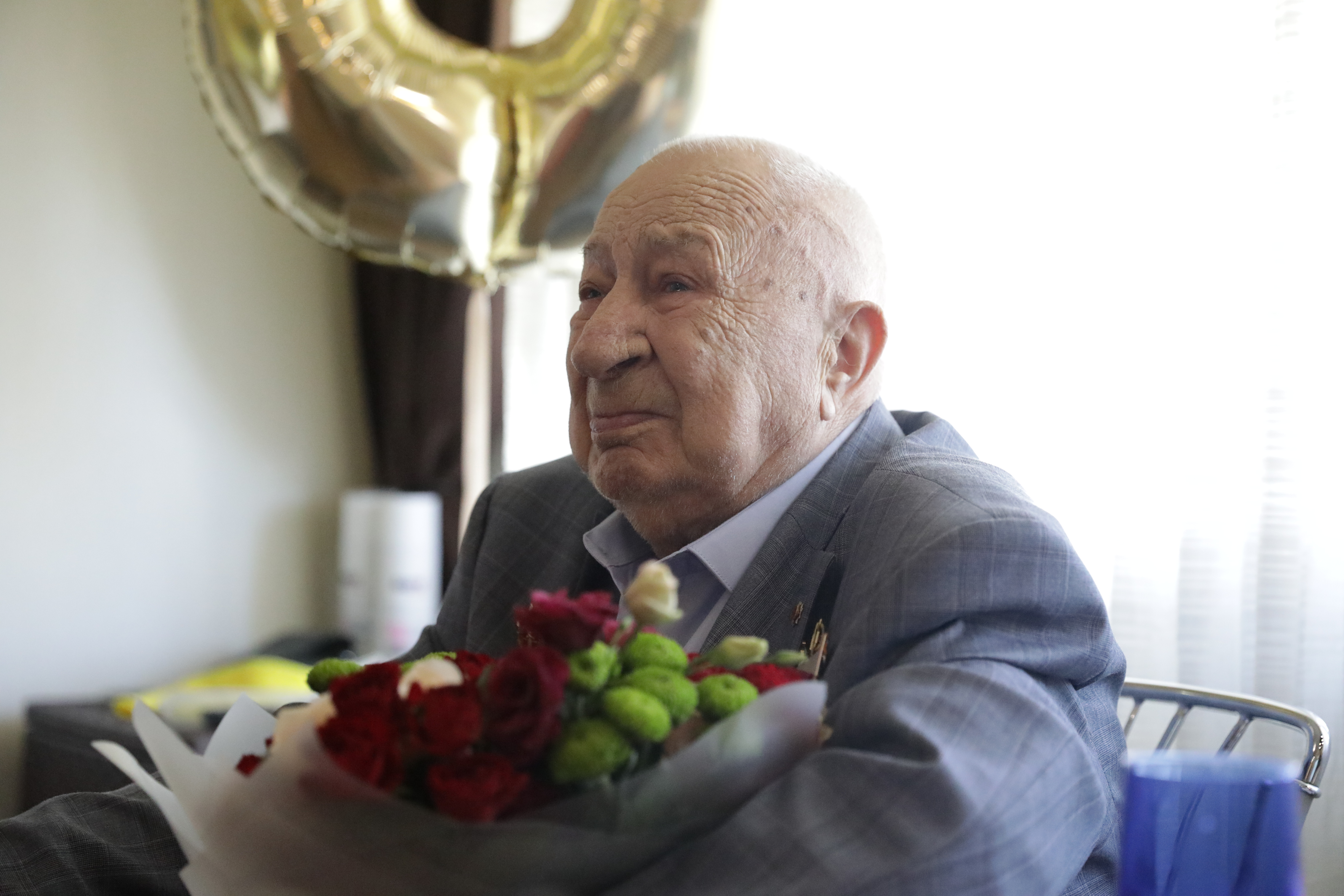 Житель осажденного Сталинграда Геннадий Затулкин принимает поздравления с 90-летием