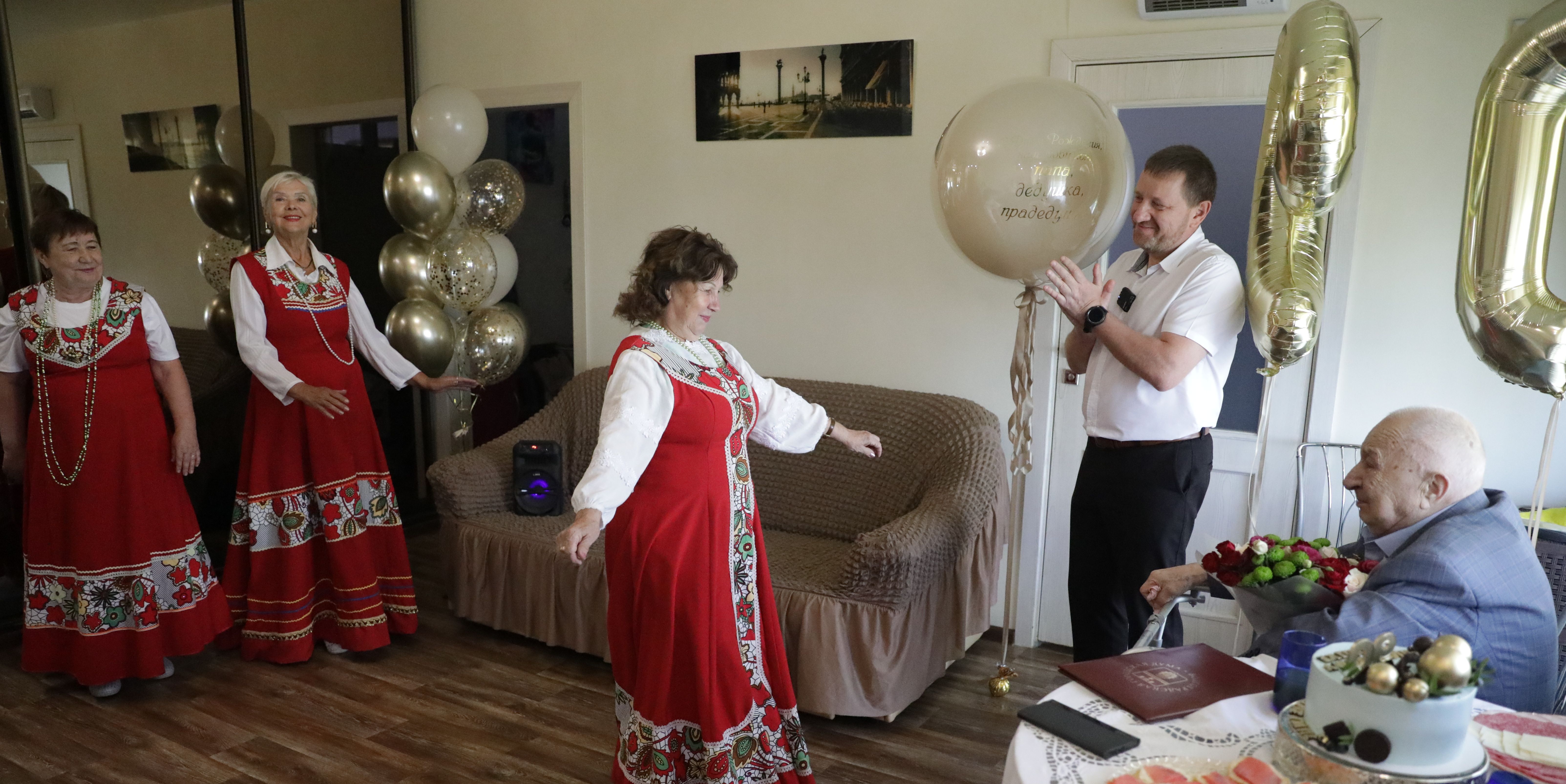 В числе тех, кто пришел сегодня поздравить Геннадия Павловича Затулкина со знаменательной датой, были и артисты ансамбля городского Совета ветеранов.
