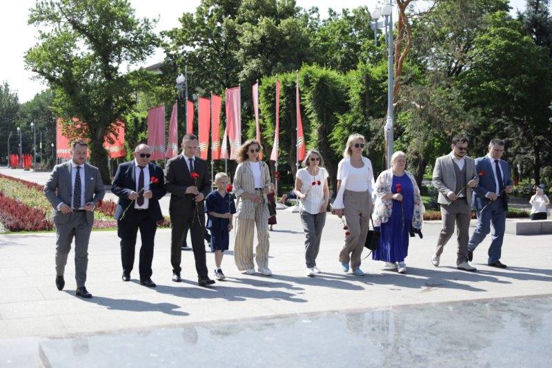 В ходе официального визита в Волгоградскую область федеральные парламентарии посетили несколько промышленных объектов, где ознакомились с реализацией новаций в части корпоративного управления, а также почтили память защитников Сталинграда на Мамаевом кургане и у Вечного огня на площади Павших Борцов.