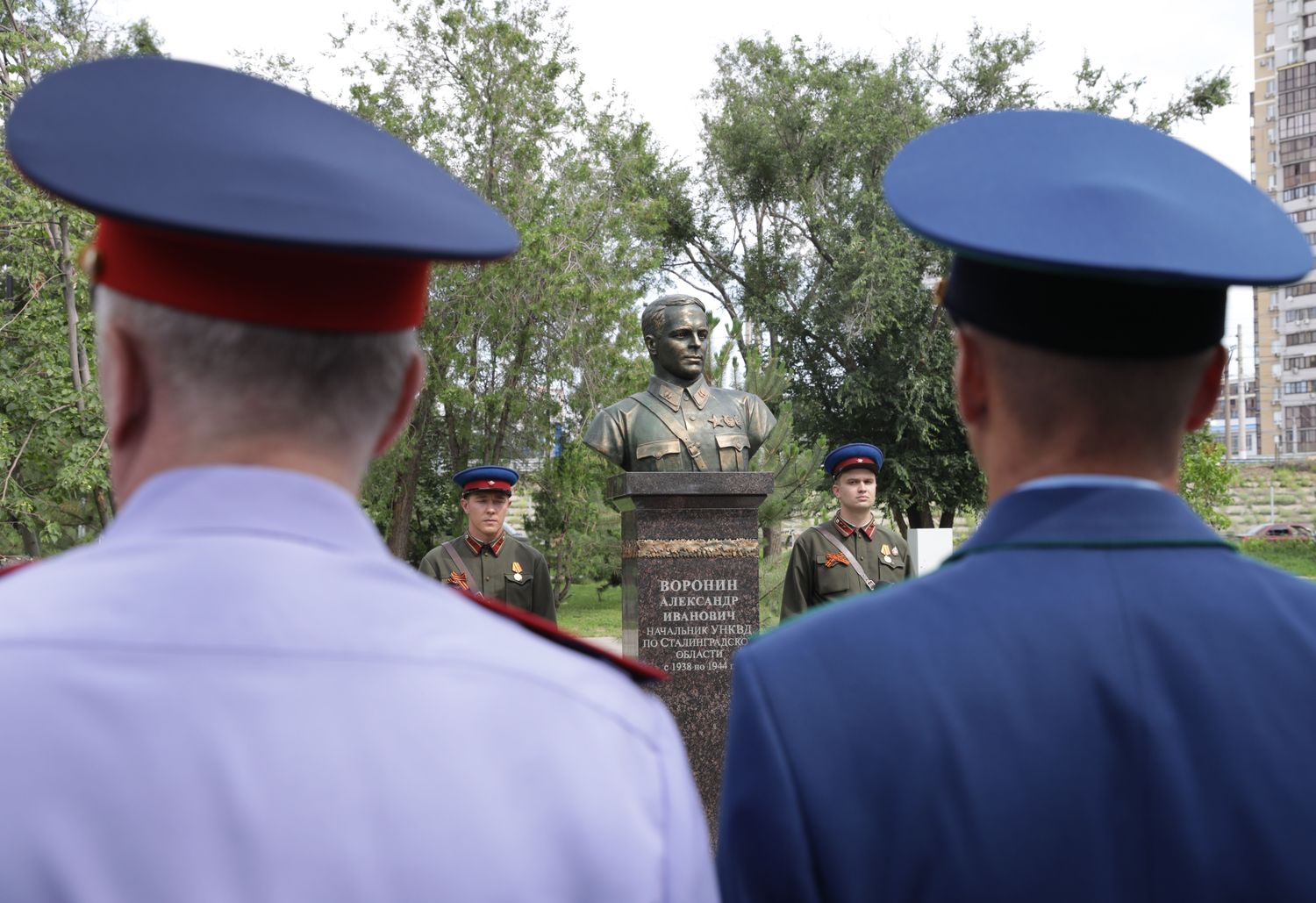 Сегодня на территории Городского парка в Центральном районе состоялось открытие бюста почетного сотрудника органов госбезопасности СССР, начальника управления НКВД по Сталинградской области в период с 1938 по 1944 годы Александра Ивановича Воронина. Почтить память участника обороны Сталинграда пришли руководство и сотрудники региональных Главков ФСБ, МВД, региональной и городской власти, ветераны органов безопасности и пограничной службы, кадеты. Почётным гостем мероприятия стала внучка генерал-лейтенанта Александра Воронина Татьяна Викторовна Пашкова, которая поблагодарила всех волгоградцев за увековечение памяти её деда.