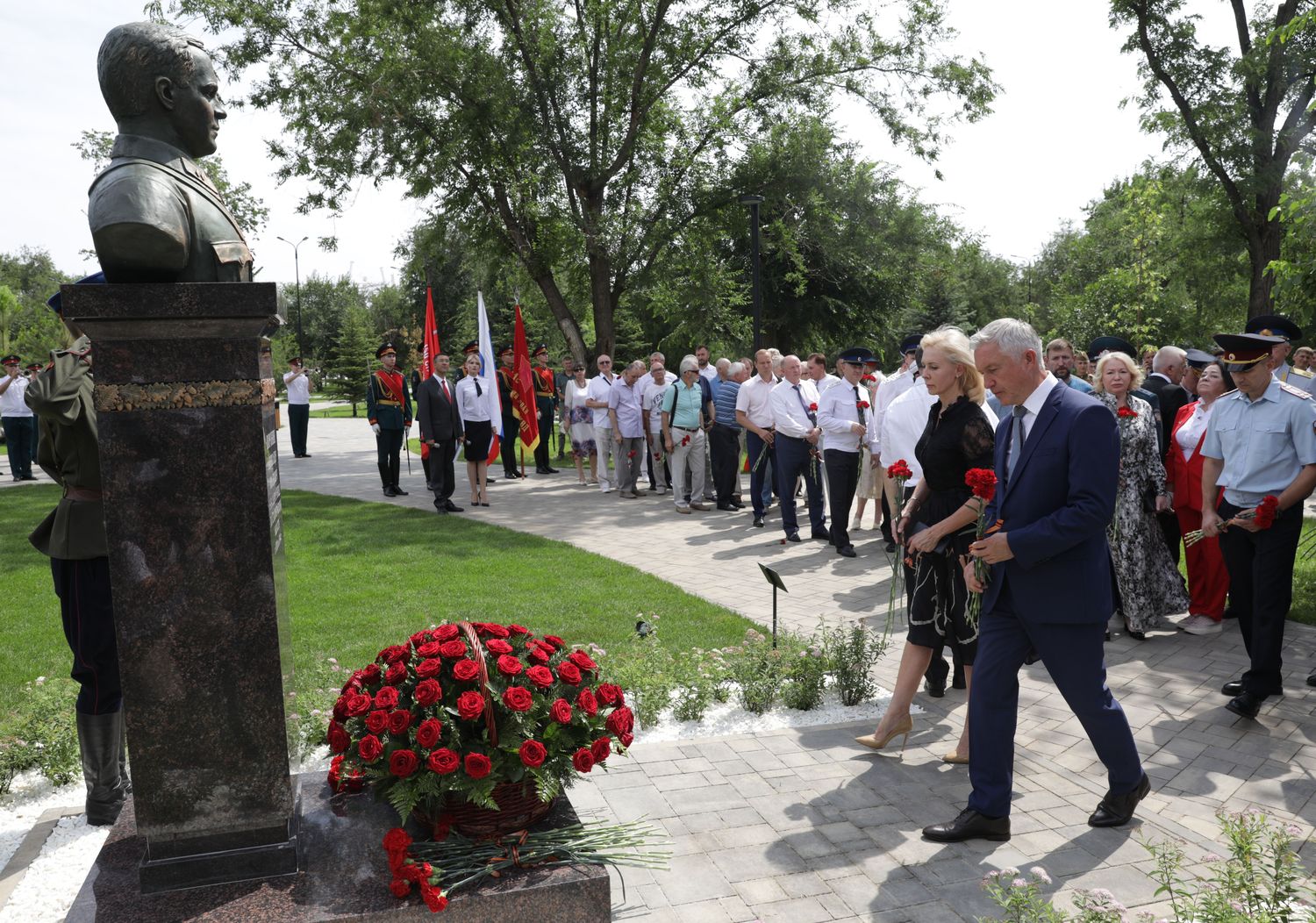 Собравшиеся возложили к бюсту цветы. Одновременно с открытием памятника было официально объявлено о наименовании в честь генерал-лейтенанта госбезопасности Александра Воронина части улицы Глубокоовражной в Центральном районе - в пределах от улицы Краснознаменской до улицы Володарского.