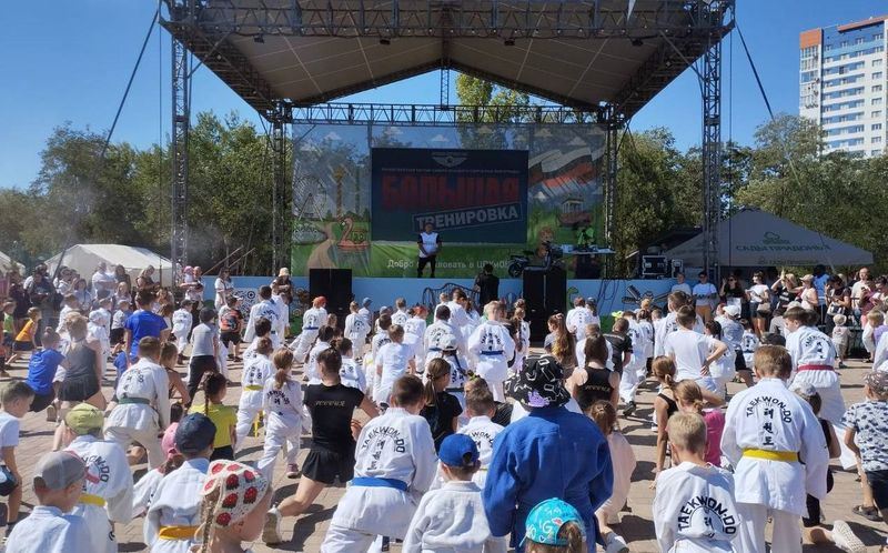 В главном парке Волгограда на «Большую тренировку» собрались самые преданные поклонники спорта. Сотни мальчишек и девчонок демонстрировали свои навыки в тхэквондо, дзюдо, рукопашном бое, футболе, а на массовой разминке получили заряд энергии перед новым учебным годом. Участие в большой тренировке приняли и дети участников СВО.