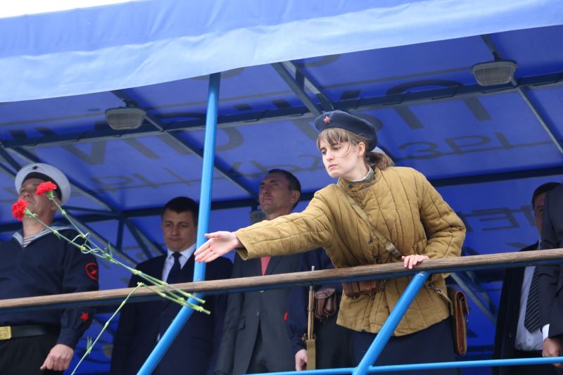 Возложение цветов к памятнику речникам Волжской военной флотилии в день 75-летия Великой Победы