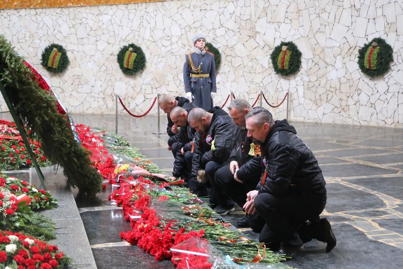 Участники акции почтили минутой молчания память советских героев-победителей. Затем гости из Словакии вместе с депутатами и представителями волгоградского мотоклуба «Ночные волки, Сталинград» поднялись на главную высоту России, где возложили живые цветы к Вечному огню в зале Воинской славы, к могиле Дважды Героя Советского Союза, маршала Советского Союза Василия Чуйкова.