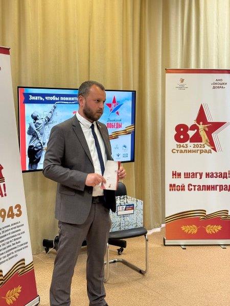 В Волгоградском областном краеведческом музее на вопросы диктанта вместе с жителями города отвечал депутат Дмитрий Никуйко. На этой же площадке была проведена акция «Письмо Герою», которую организовали совместно «Почта России» и партия «Единая Россия». Участниками «Диктанта Победы», помимо теста, были написаны письма с добрыми пожеланиями участникам СВО, которые тут же отправились адресатам.