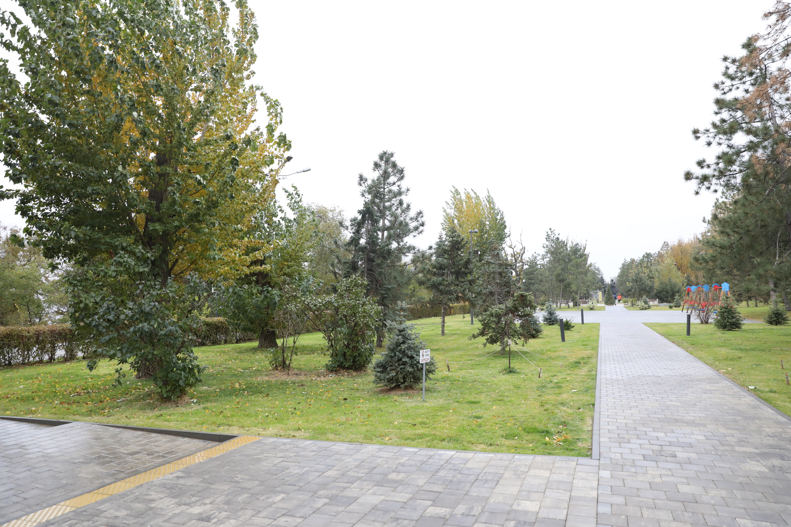 Приведены в порядок покрытие пешеходных зон, сделаны системы наружного освещения, видеонаблюдения, оповещения, поливочный водопровод, установлены малые архитектурные формы, детская игровая площадка с травмобезопасным покрытием, пергола, качели с навесом.