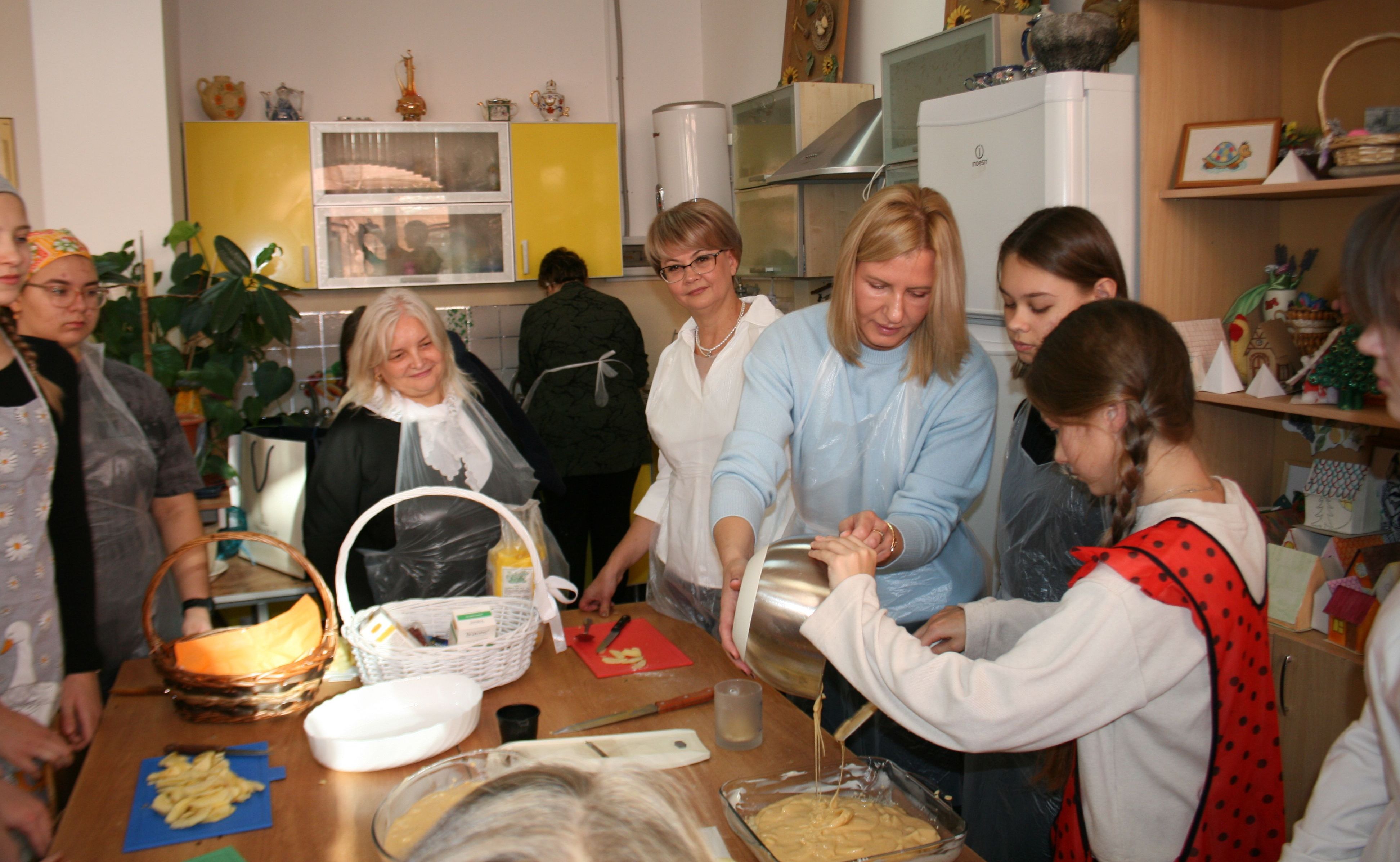 На уроке технологии 7 класса председатель комитета гордумы по образованию, культуре, молодежной политике, спорту и туризму, директор лицея №5 Лариса Тропкина рассказала о народных кулинарных традициях нашей страны, передаваемых из поколения в поколение. Депутат гордумы, председатель регионального общественного совета партпроекта «Женское движение Единой России» Татьяна Краснова поделилась секретами своего семейного рецепта пирога с яблоками, и испекла его вместе со школьницами.