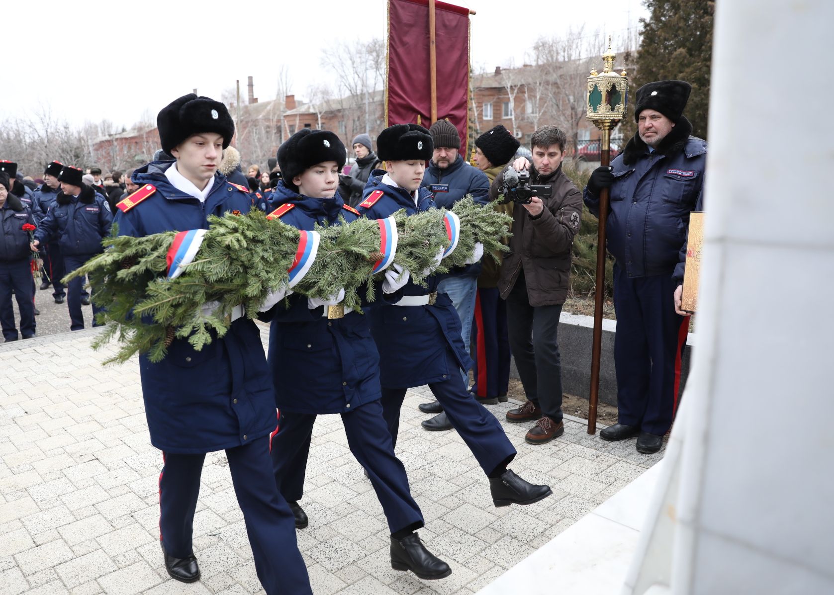 В память о погибших мирных жителях и защитниках Сталинграда была отслужена заупокойная лития. Затем участники митинга возложили цветы к мемориалу и почтили память павших воинов минутой молчания.