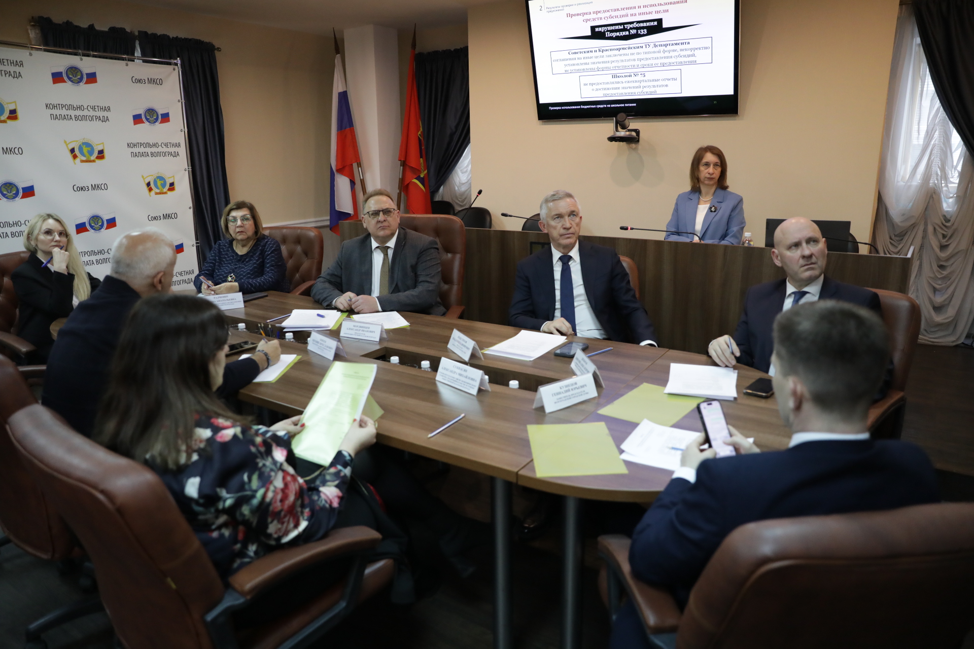 В Контрольно-счетной палате Волгограда состоялось заседание расширенной коллегии, на котором были рассмотрены результаты проверки использования бюджетных средств на обеспечение бесплатным горячим питанием учащихся первых – четвертых классов муниципальных общеобразовательных организаций Волгограда, а также школьников льготных категорий за 2022-2023 годы и I квартал-2024. Помимо аудиторов в работе коллегии приняли участие представители мэрии и Общественной палаты Волгограда. Депутатский корпус представили председатель гордумы Владлен Колесников и вице-спикеры Дмитрий Дильман и Геннадий Кузнецов.