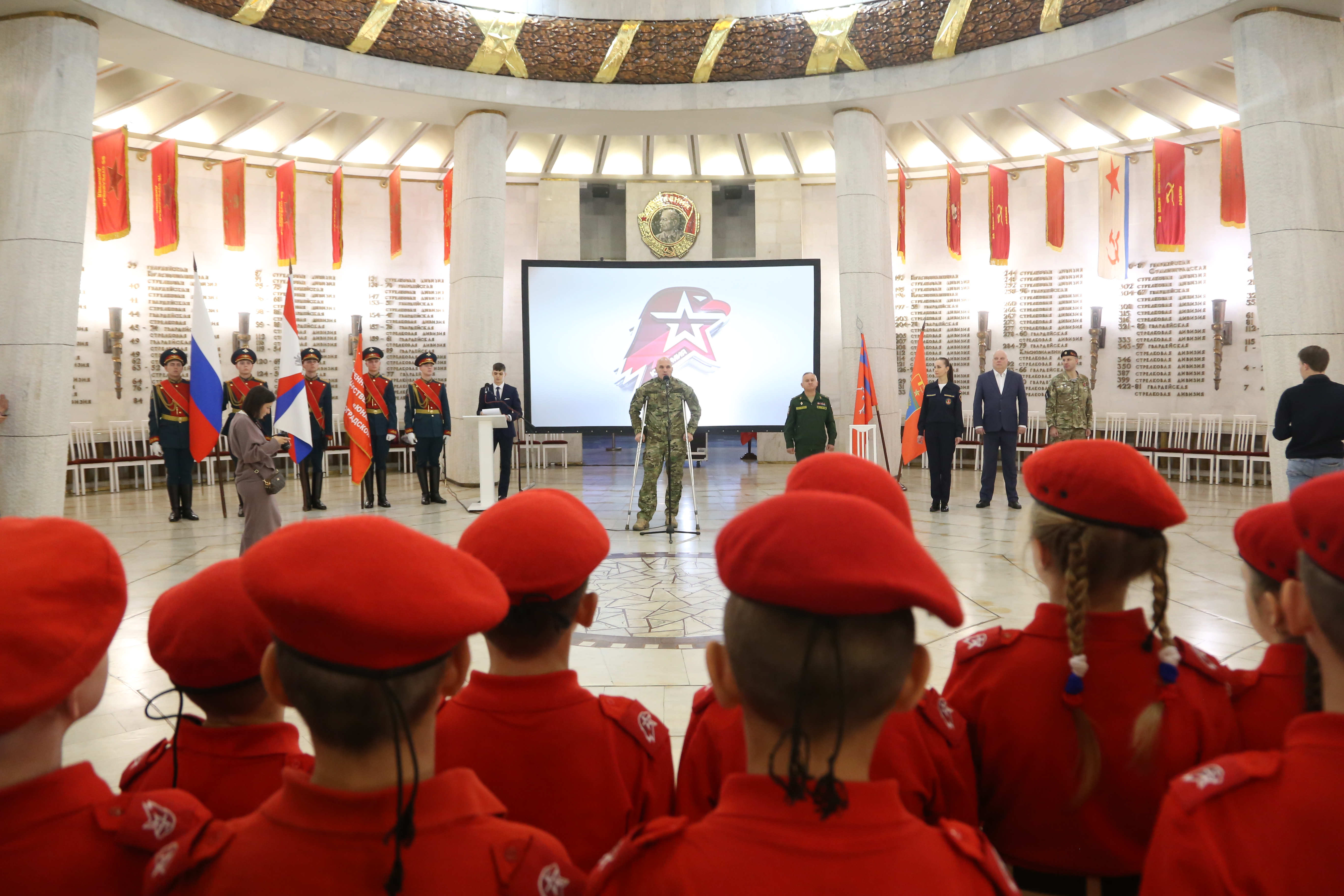 Сегодня в Триумфальном зале музея-панорамы «Сталинградская битва» в торжественной обстановке принял присягу 71 юнармеец из школ Волгограда, Среднеахтубинского и Ленинского районов области. Со словами напутствия к ребятам обратился депутат Волгоградской городской Думы, участник специальной военной операции, боец добровольческого отряда «Бессмертный Сталинград» Игорь Воробьёв.