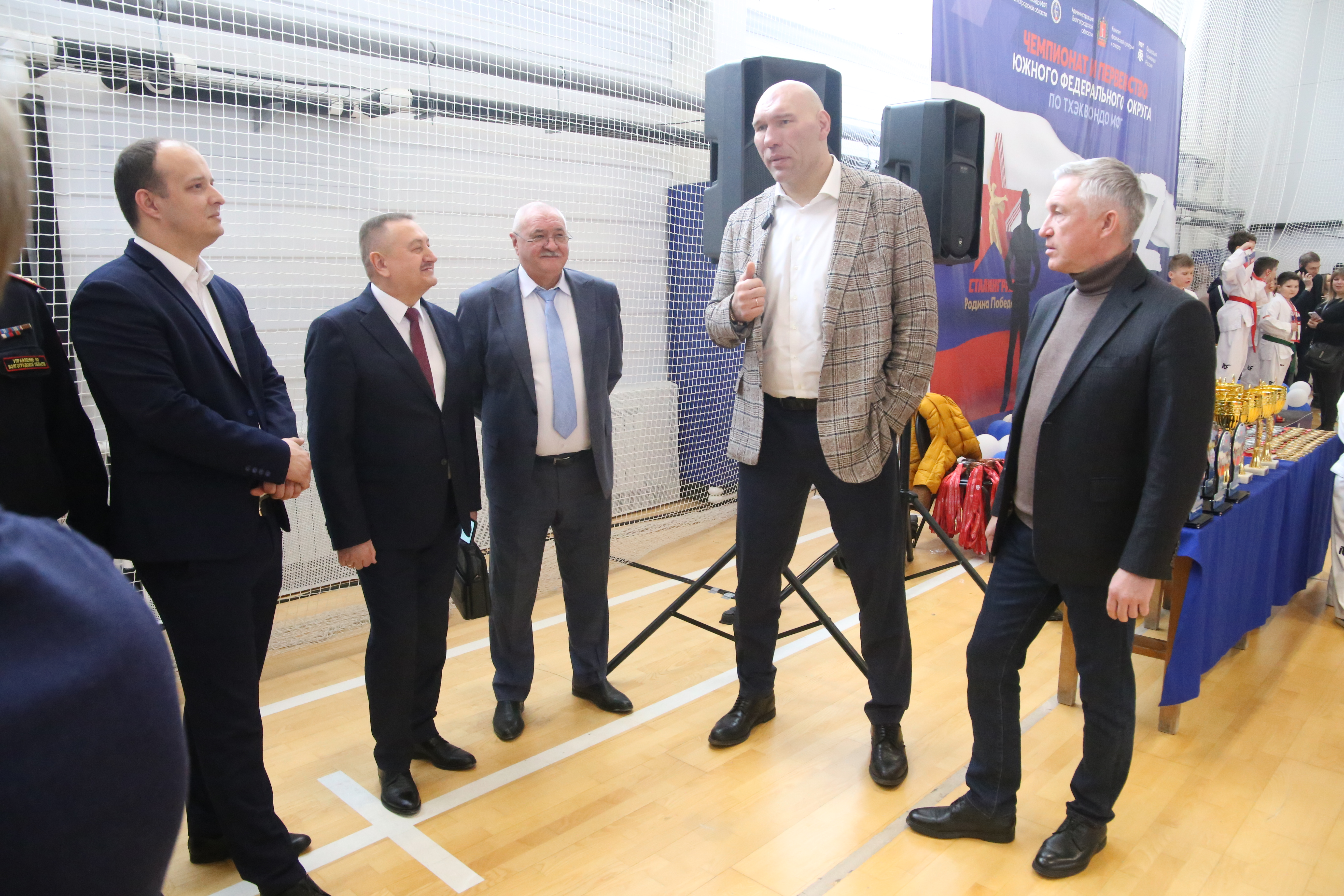 Гостем соревнований по тхэквондо в Волгограде стал депутат Государственной Думы ФС РФ, чемпион мира по боксу в тяжелом весе Николай Валуев. Прославленный спортсмен приветствовал всех участников турнира.