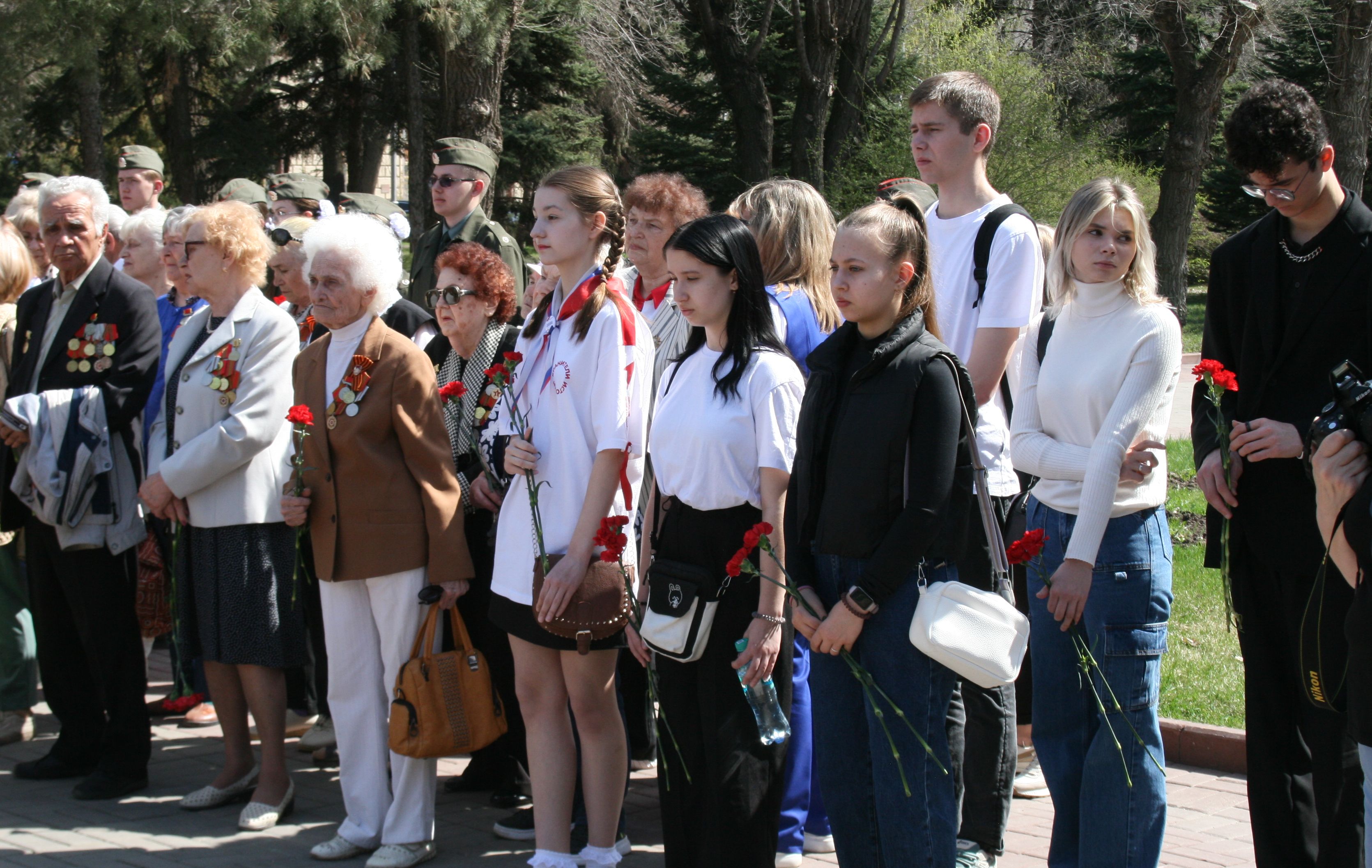 Участники акции почтили память жертв фашизма минутой молчания и возложили к Вечному огню живые цветы.