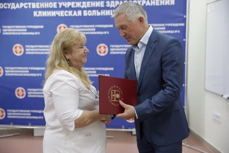 Владлен Колесников поблагодарил коллектив больницы за высокий профессионализм, благодаря которому удается достигать высоких результатов в диагностике, лечении и профилактике заболеваний. Главный врач больницы №4 Елена Щербинина, в свою очередь, выразила признательность спикеру гордумы за поддержку и помощь в решении текущих вопросов – минувшей зимой, к примеру, потребовалось оперативно решить вопрос с подключением к теплоснабжению новых операционных блоков хирургического отделения.