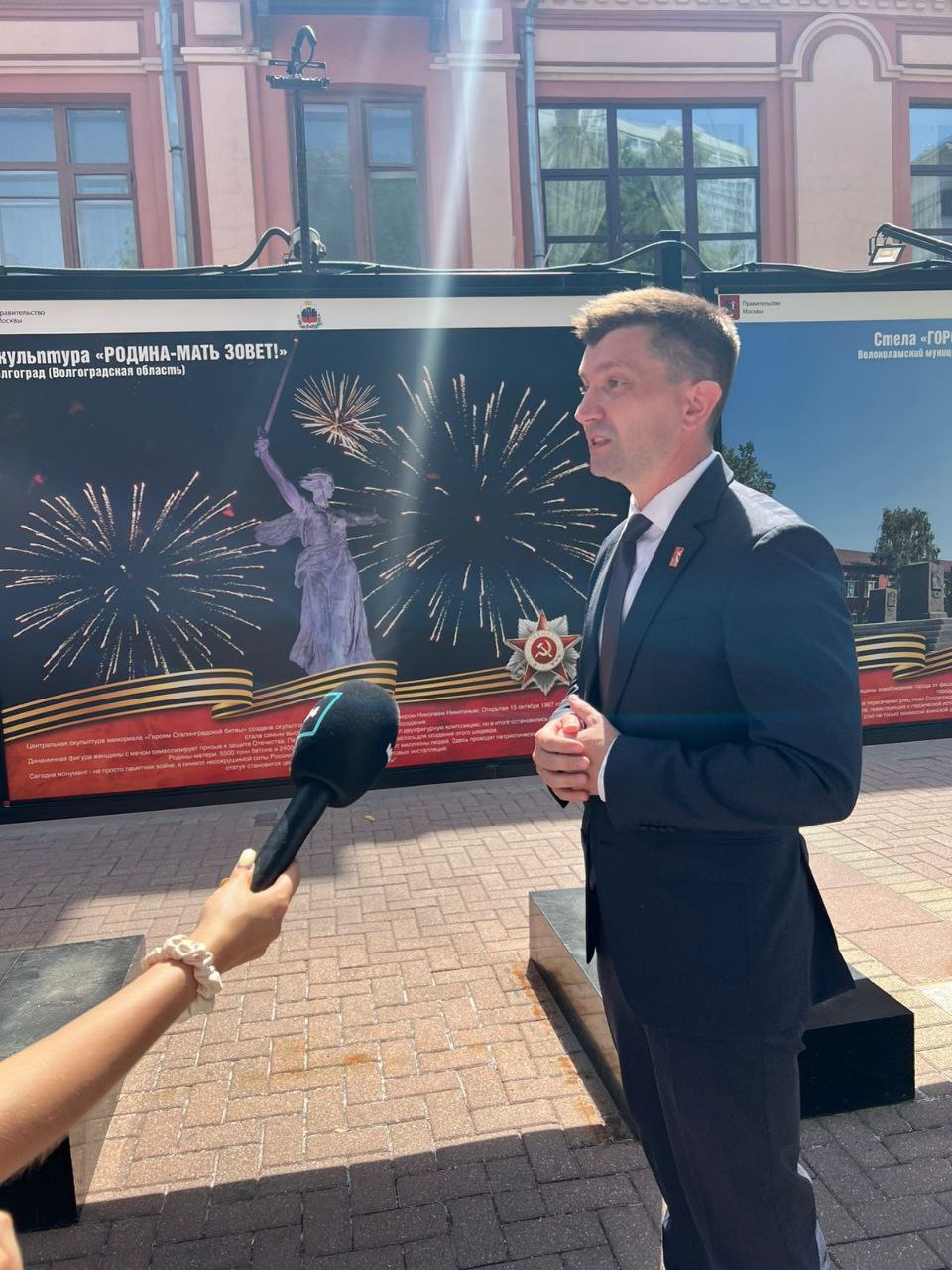 В рамках торжественного открытия выставки представители городов рассказали о знаковых памятниках, представленных в экспозиции. О всемирно известной скульптуре «Родина-мать зовёт!», изображение которой стало официальным логотипом празднования 80-летия Великой Победы, рассказал москвичам заместитель председателя Волгоградской городской Думы Геннадий Кузнецов.