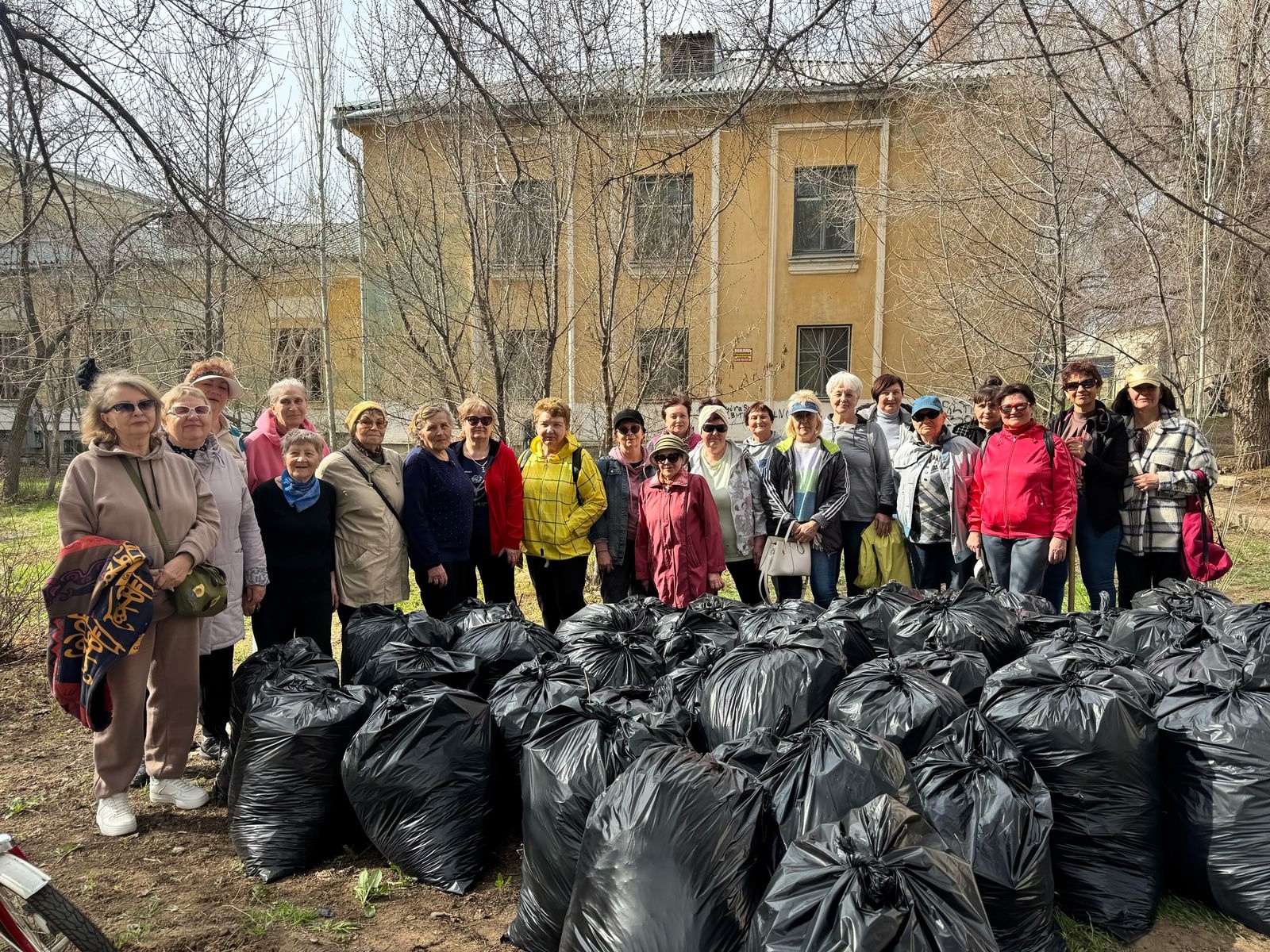 Субботник на зеленой территории у спортивной школы «Зенит» провели активистки группы здоровья «Здрайверы» и  ветераны спорта Волгограда.