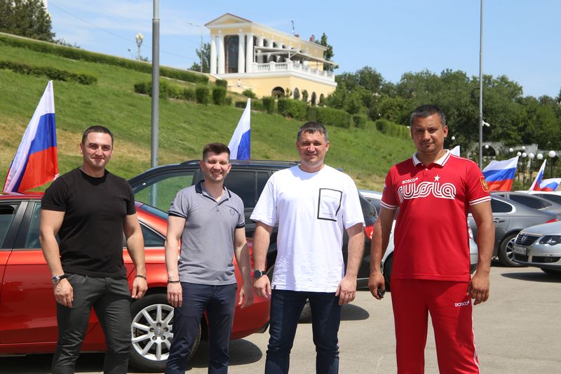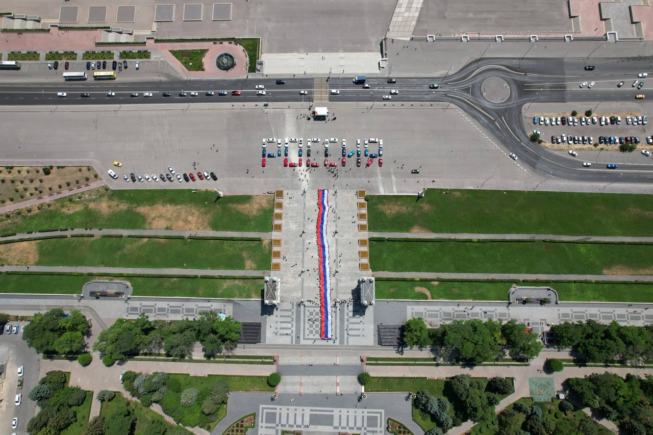 Когда автолюбители уже готовились к старту пробега, на центральной набережной Волгограда появился российский флаг. Молодежь города-героя пронесла 80-метровое полотнище от площади Павших Борцов до Нижней террасы, где развернула флаг под звуки государственного гимна. Активисты молодежных организаций и патриотических клубов, учащиеся образовательных учреждений приветствовали участников автопробега, который отъехали от набережной под звуки песни «Россия».